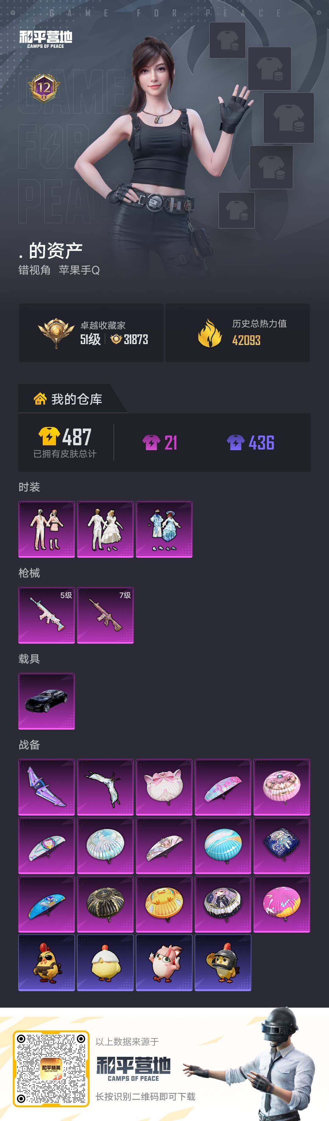 W16517 可立即换绑无需挂单养号 苹果 手Q-3粉装-2特效枪-1载具-2粉色飞行器-42093热力值-12王牌印记-101套装-126枪皮