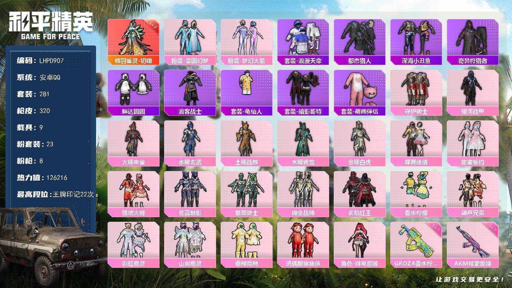 【小素材号/两级孔雀/雪国/新101/都市/小丑鱼/浪漫天命/胖达圆圆/】安卓 手Q-1神装-23粉装-8特效枪-10载具-9粉色飞行器-126216热力值-22王牌印记-281套装-320枪皮【红色神装等级】:辉羽雀灵-初翊(二级)【红色角色神装】:辉羽雀灵-初翊【热门品类】:粉装-雪国幻梦,粉装-梦幻火箭,套装-浪漫天命,套装-都市猎人,套装-深海小丑鱼,套装-奇异狩猎者,套装-胖达圆圆,套装-浪客战士,套装-龟仙人,套装-暗影哥特,套装-萌熊伴侣【粉色套装】:粉装-守护骑士,粉装-银河战甲