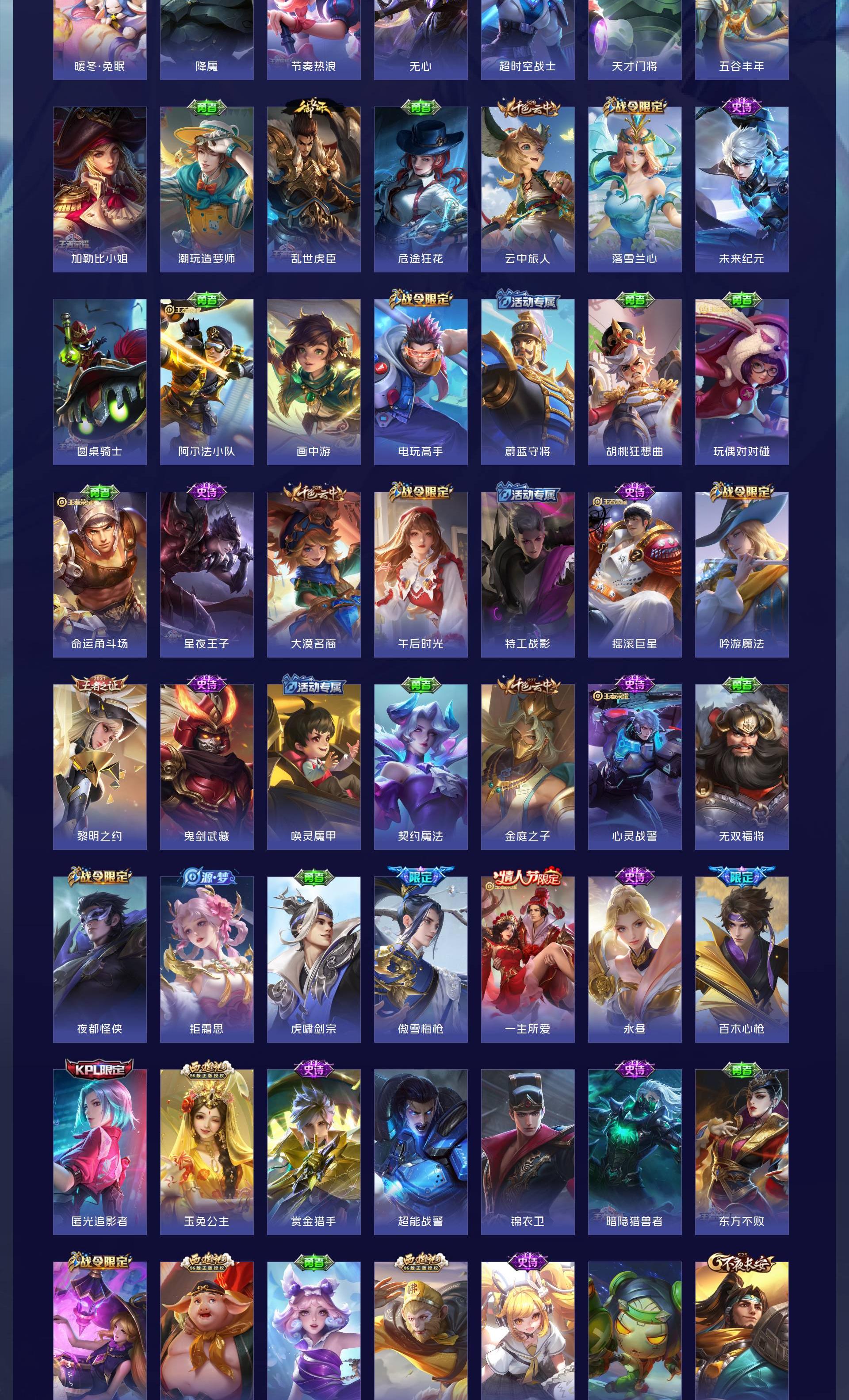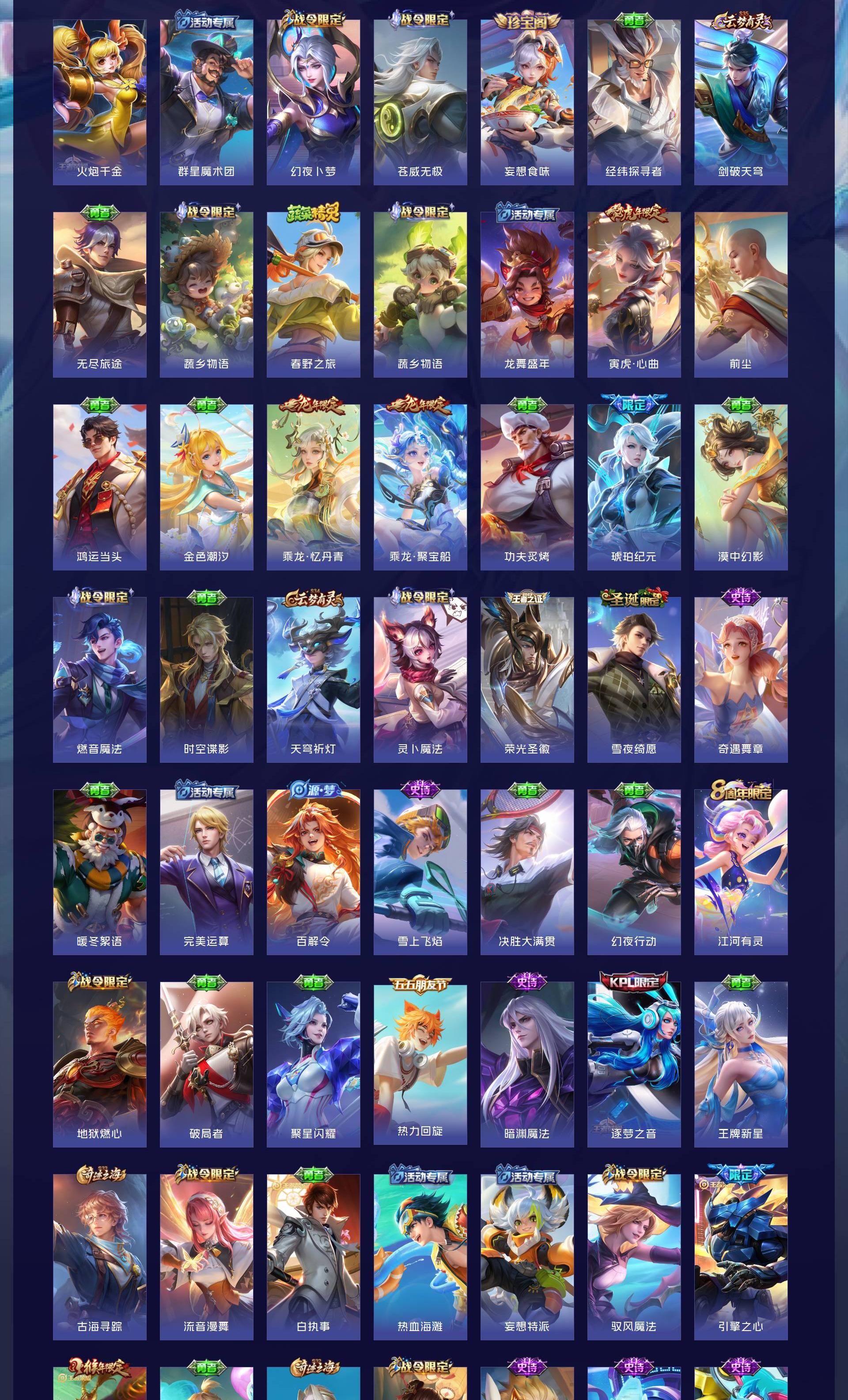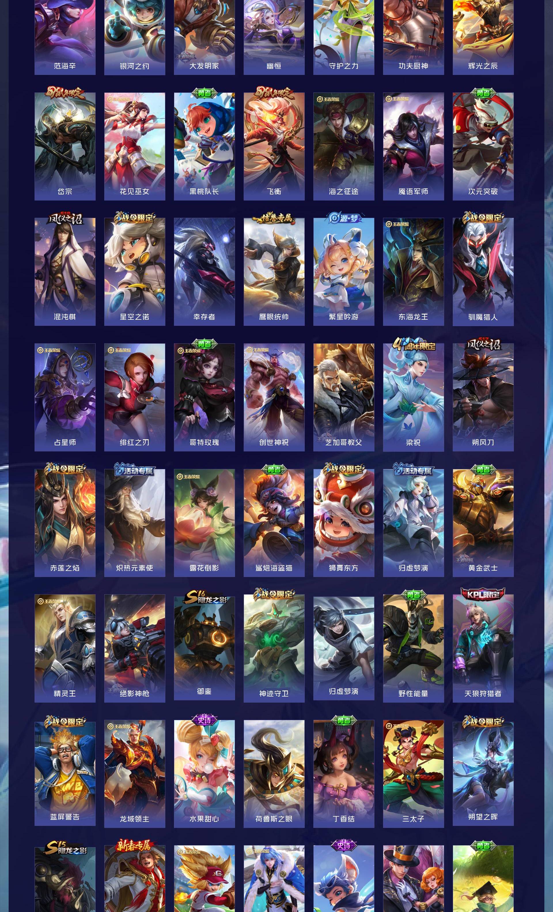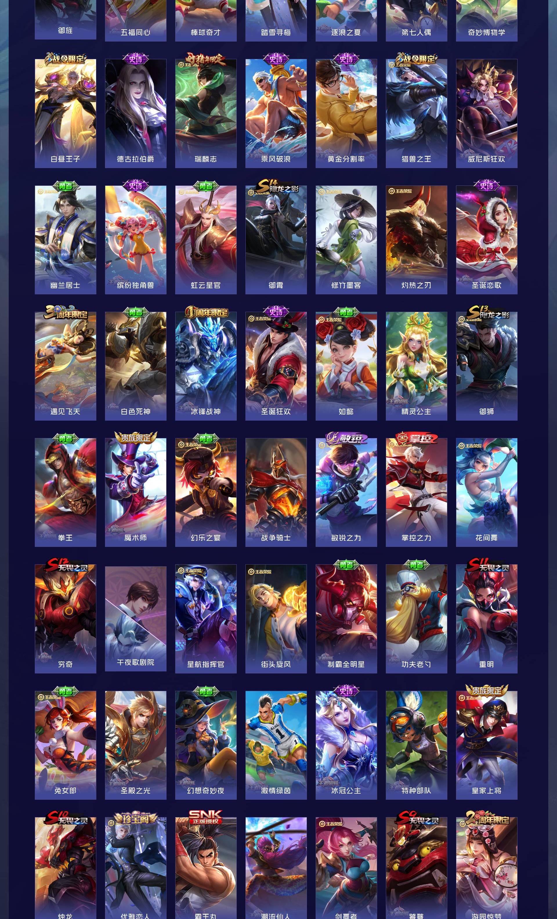 V10 皮肤613 英雄130 最强王者 荣耀典藏9 无双皮肤9 珍品传说7 星传说7 传说82