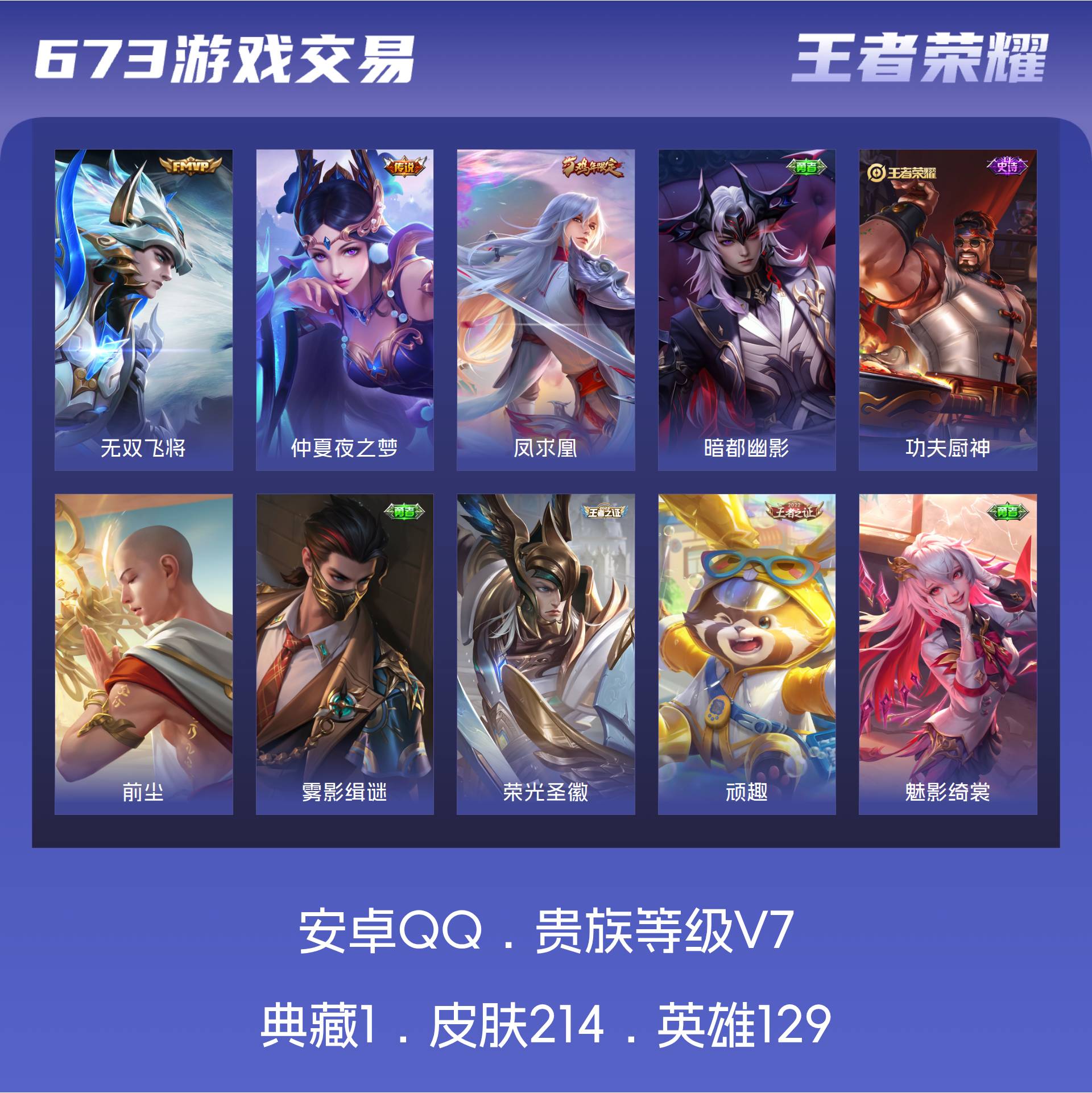 V7 皮肤214 英雄129 至圣王者 荣耀典藏1 星传说1 传说3