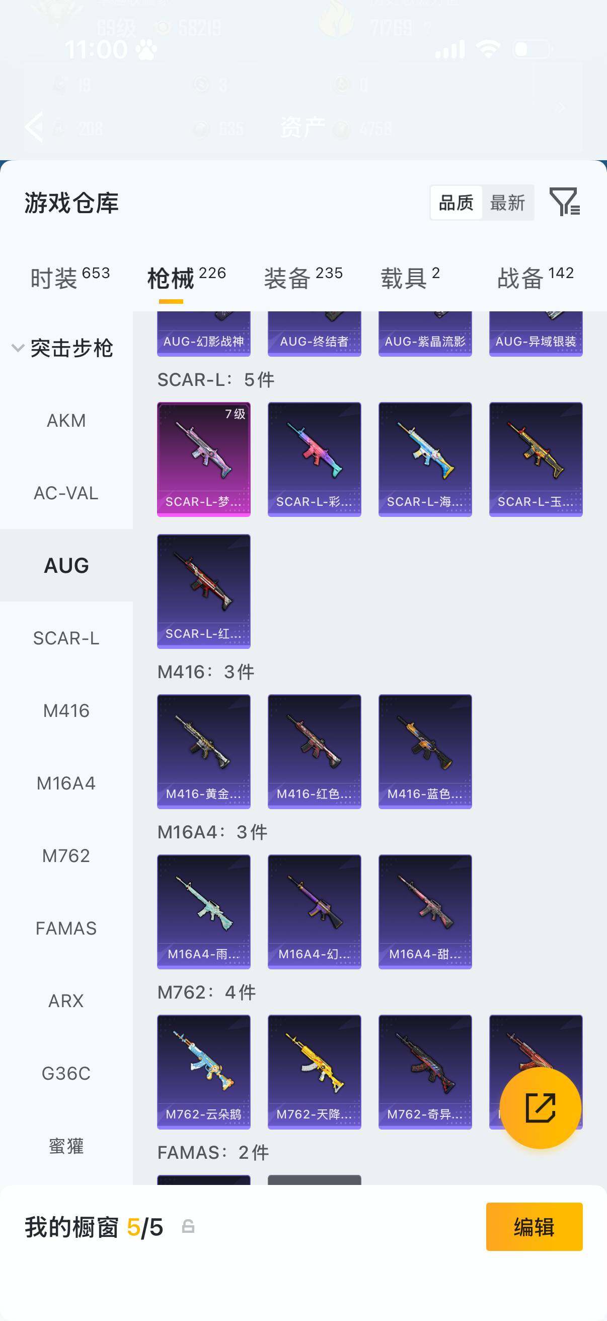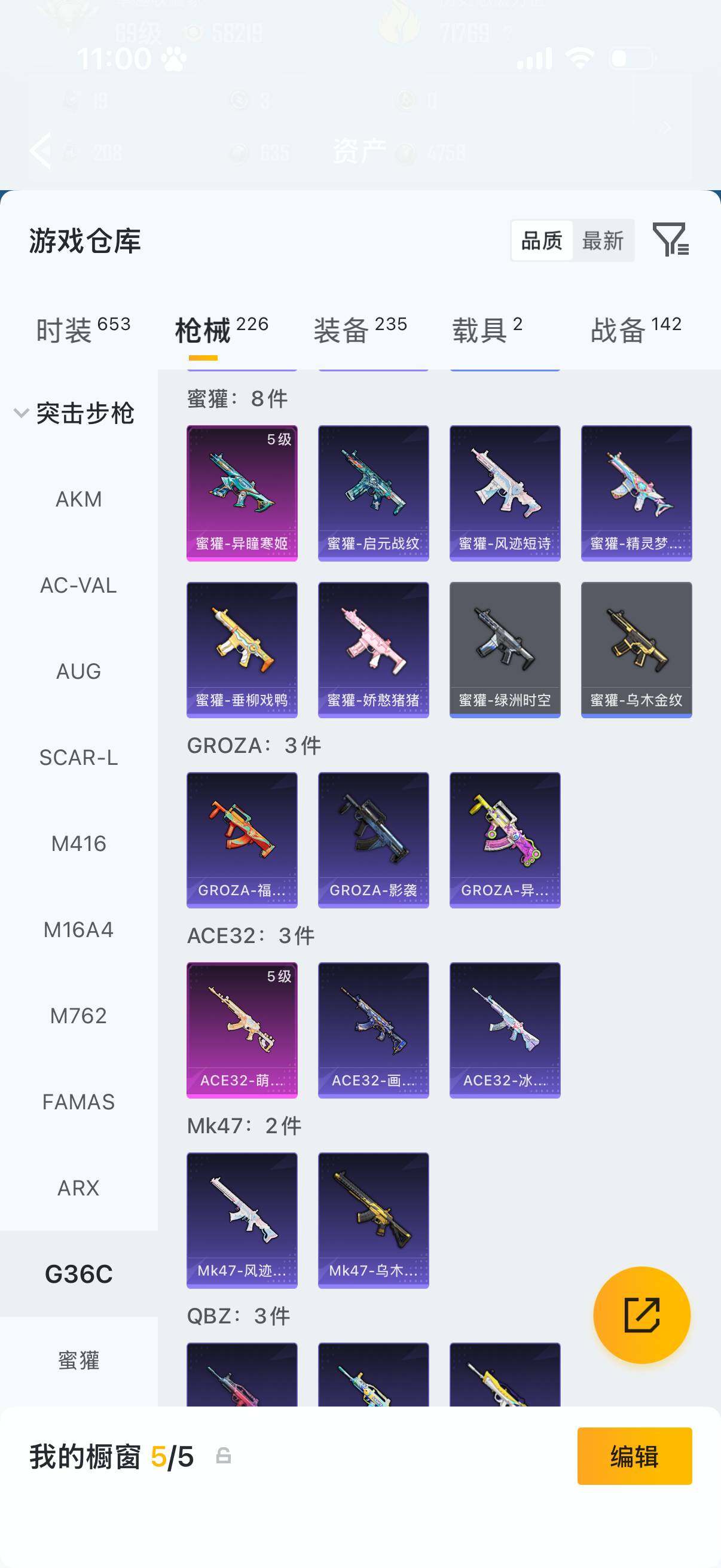 1神装-8粉装-10特效枪-2载具-9粉色飞行器-71769热力值-6王牌印记-162套装-226枪皮