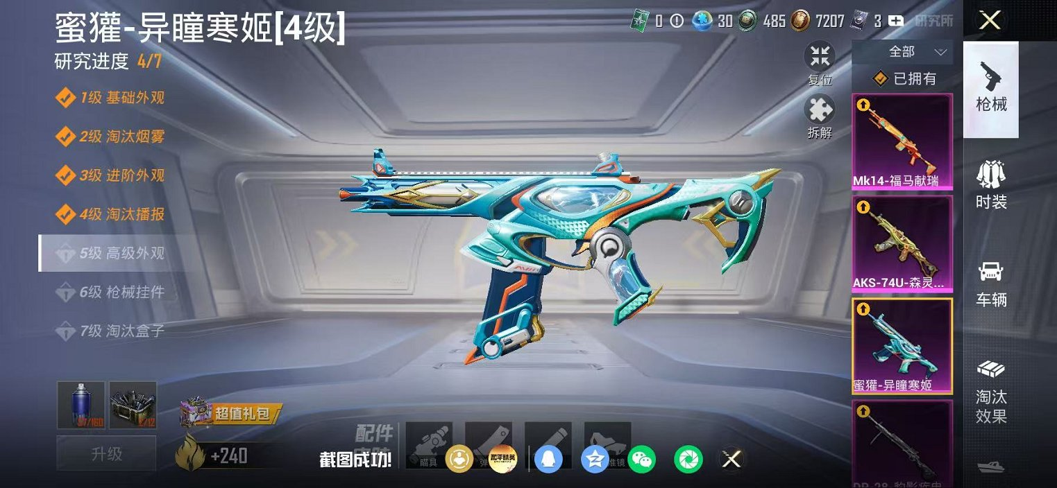 756-【4级图卡盟 敖渊2红装4粉装7特效枪1载具】 苹果V区-48706热力值-82套装-147枪皮 【2红装】 墨龙九天-敖渊(1级) 沙丘之主-图卡盟(4级)【1载具】 星梦玉骢【4粉装】 梦幻火箭 快乐主宰 幻彩电音 角色-异瞳寒姬【7特效枪】 Mk14-福马献瑞(4级) AKS-74U-森灵之息(5级) M416-墨龙九天(3级) Kar98K-巳巳如意(5级) DP-28-豹影疾