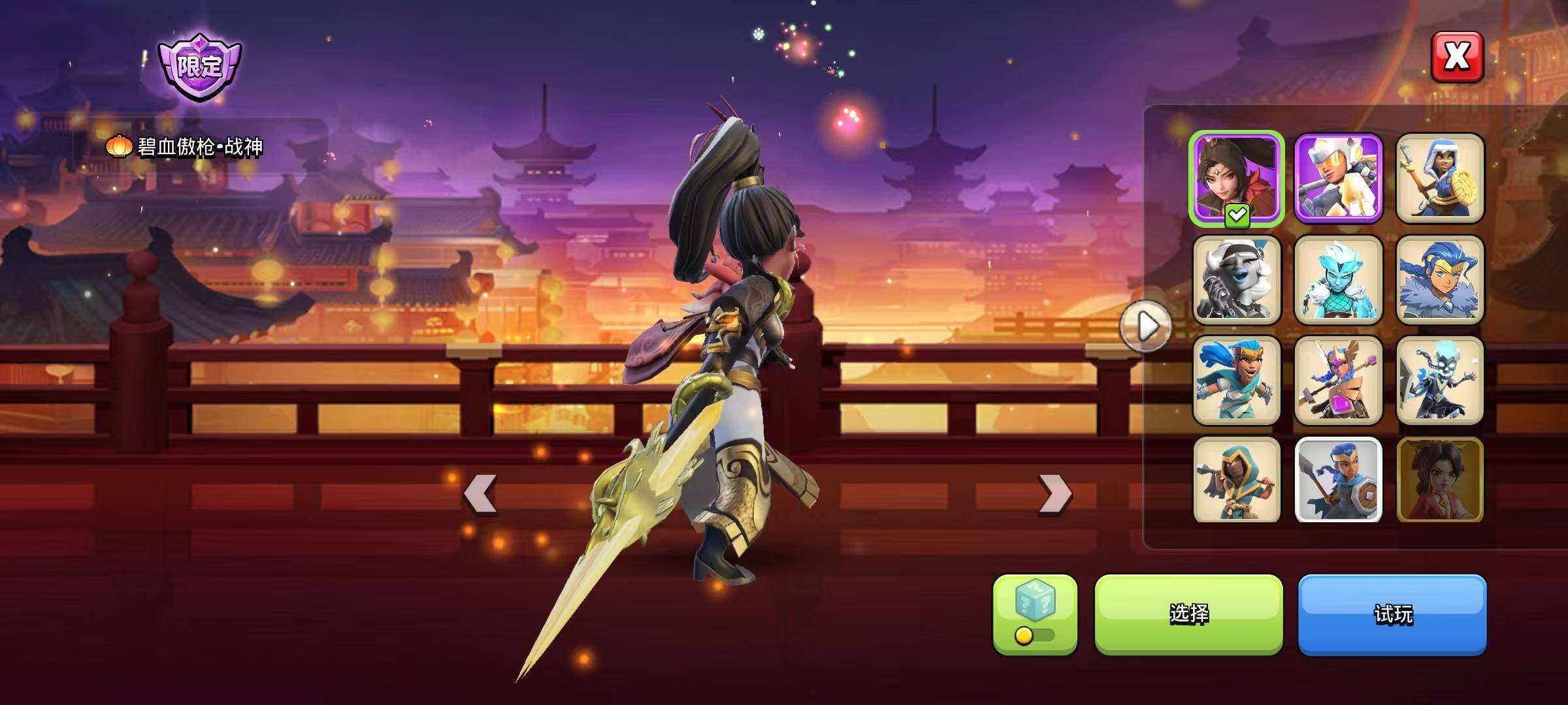 ,大唐·盛世万象,深海秘境,凌烟武将·蛮王,星海·脉冲蛮王,凰鸣千秋·女皇,日月当空·女皇,玉露流光·嫦娥,月影仙·嫦娥,谪仙太白·守护者,碧血傲枪·战神,星海·黑洞战神