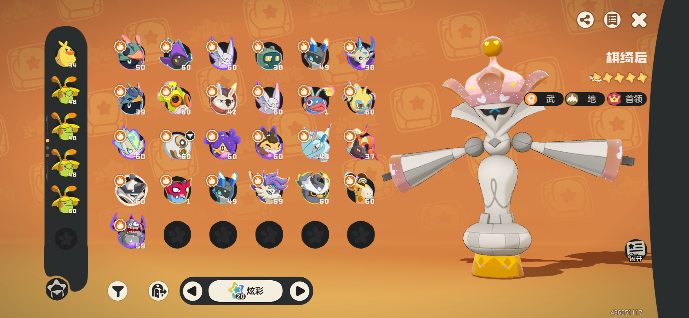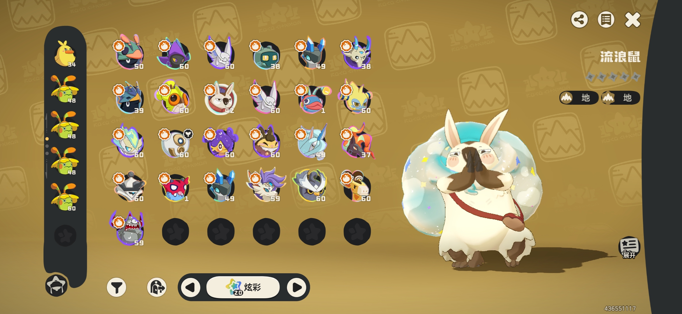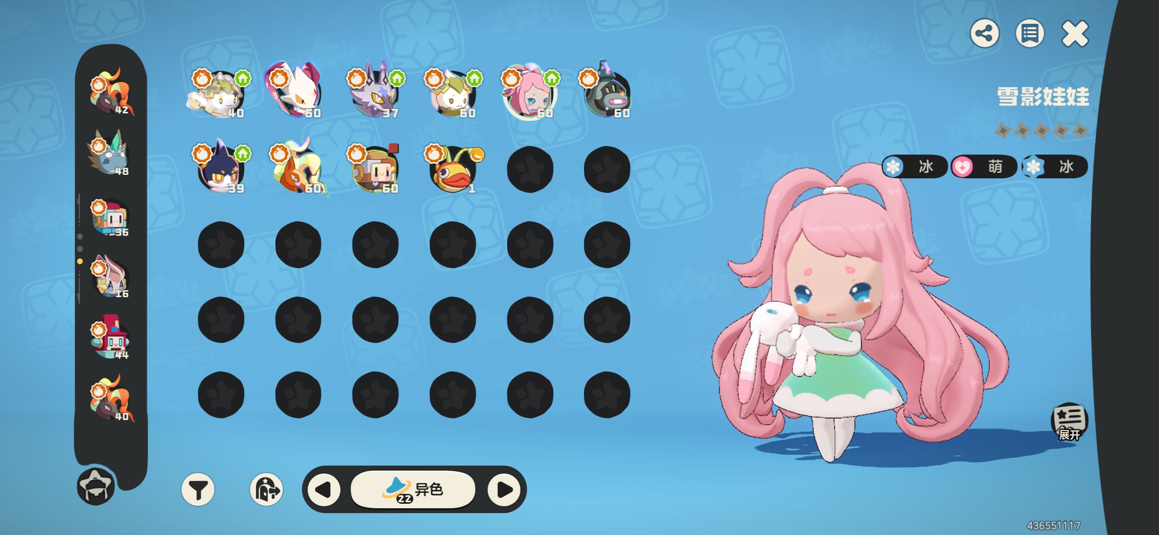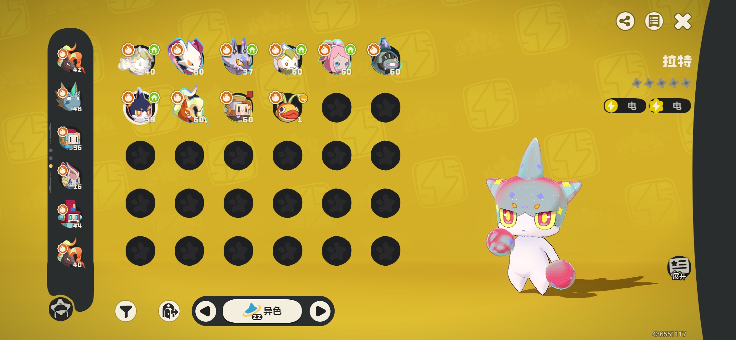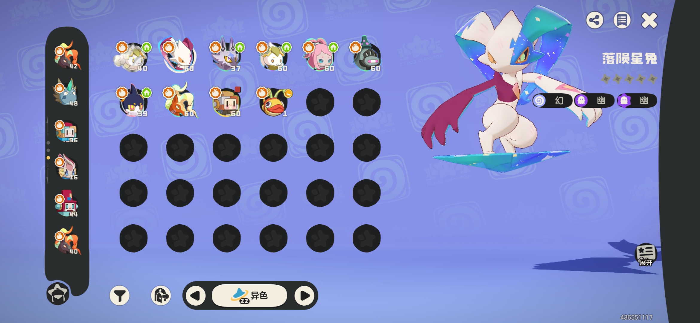 57级黑白异色治愈兔,其余10异色,34炫彩