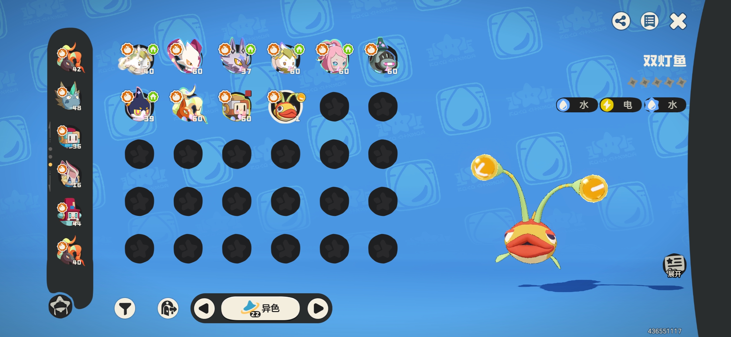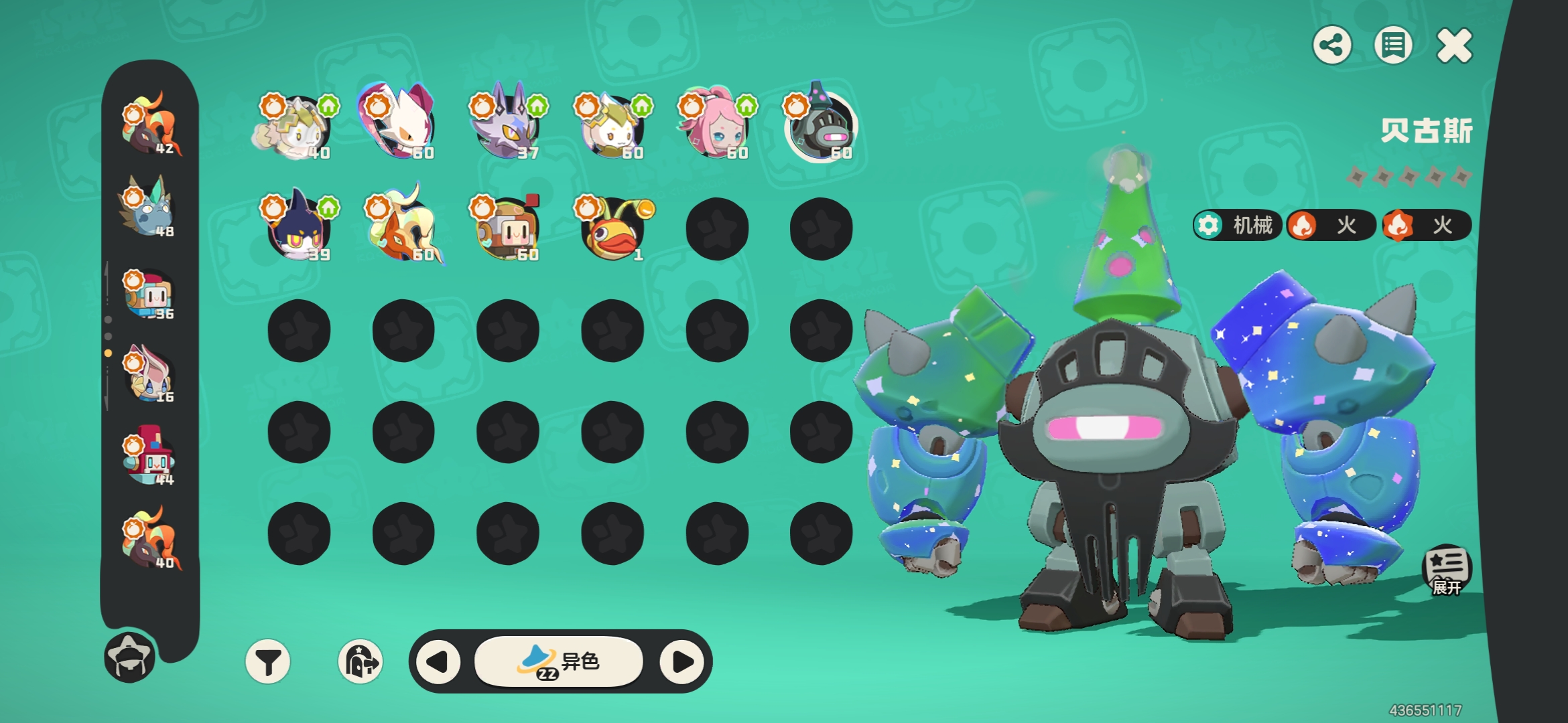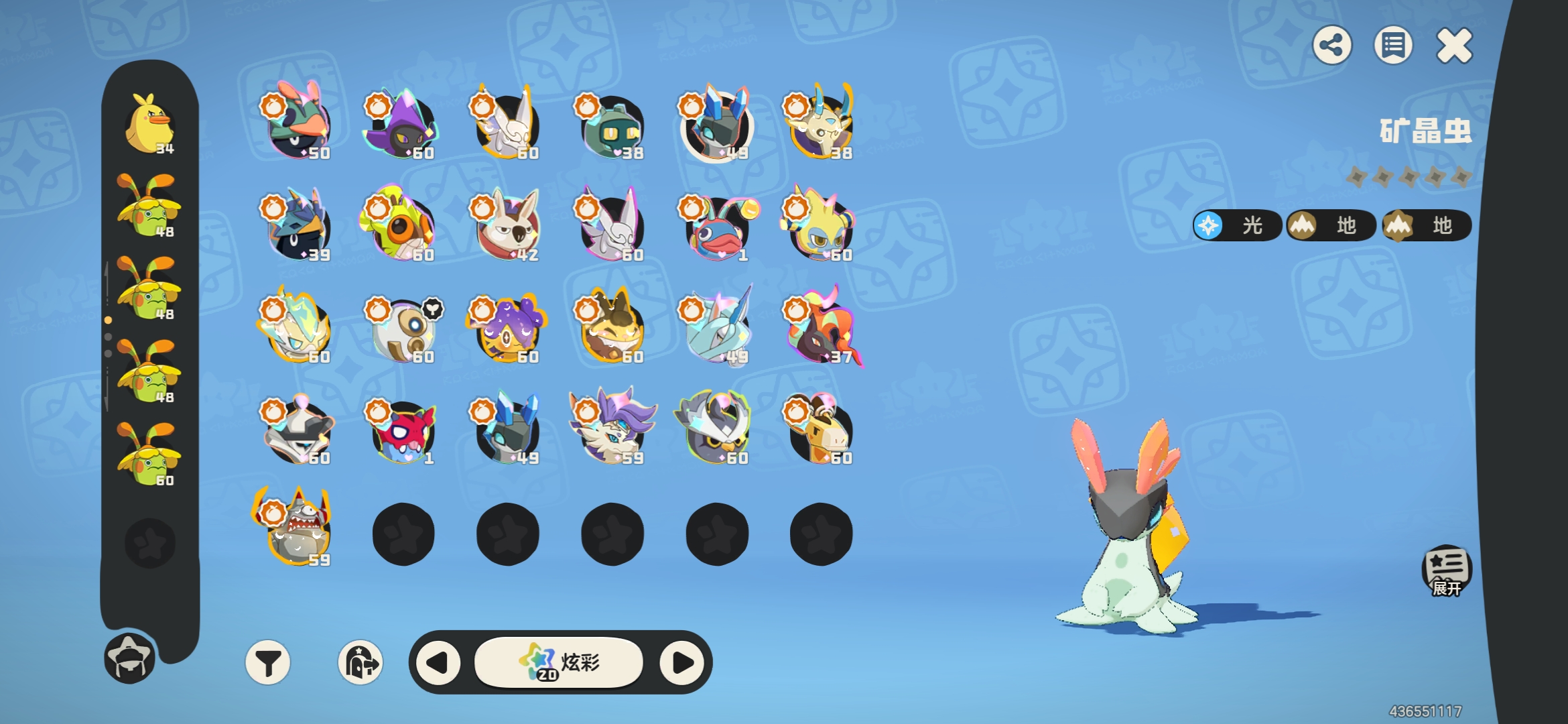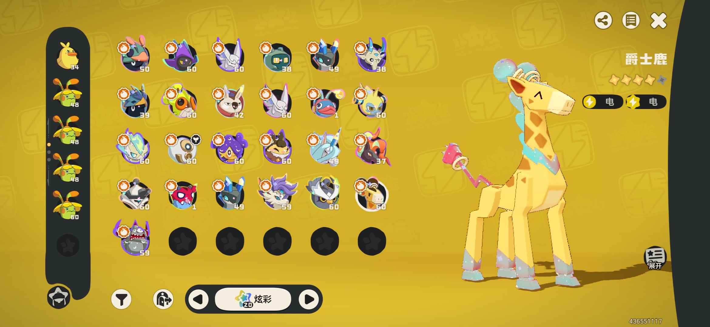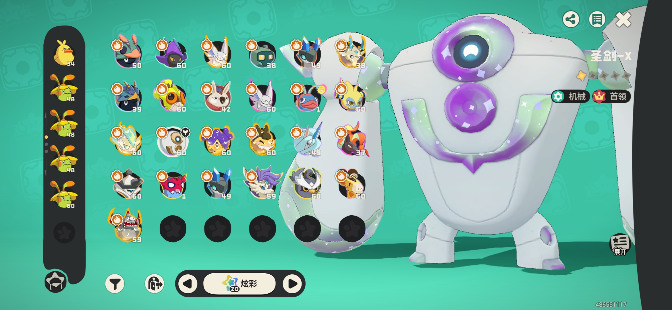 57级黑白异色治愈兔,其余10异色,34炫彩