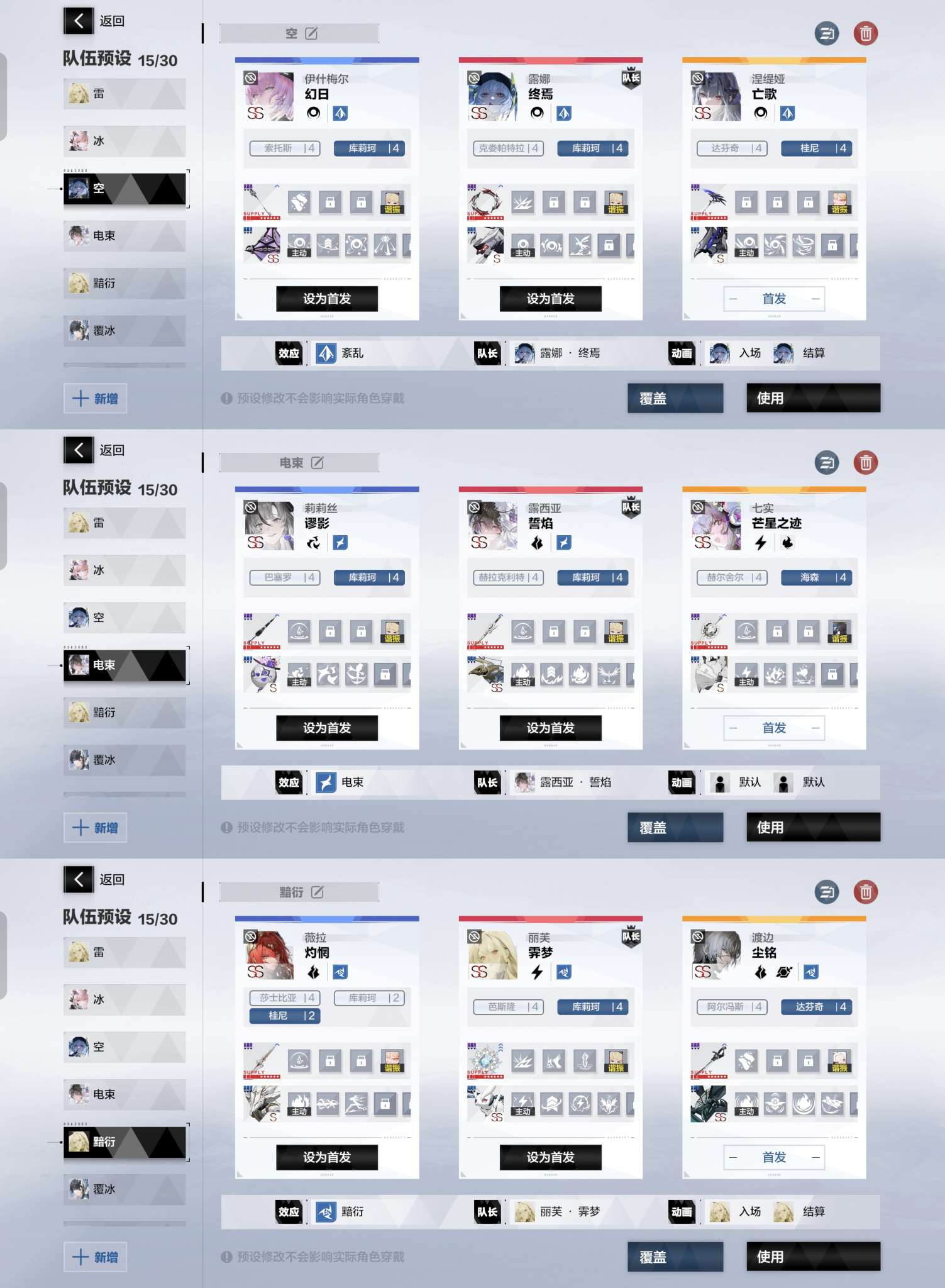 全队伍毕业成型,全顶配队伍,SSS晖暮加专武,SSS深痕加专武,SSS启明加专武,SSS明晰梦加专武