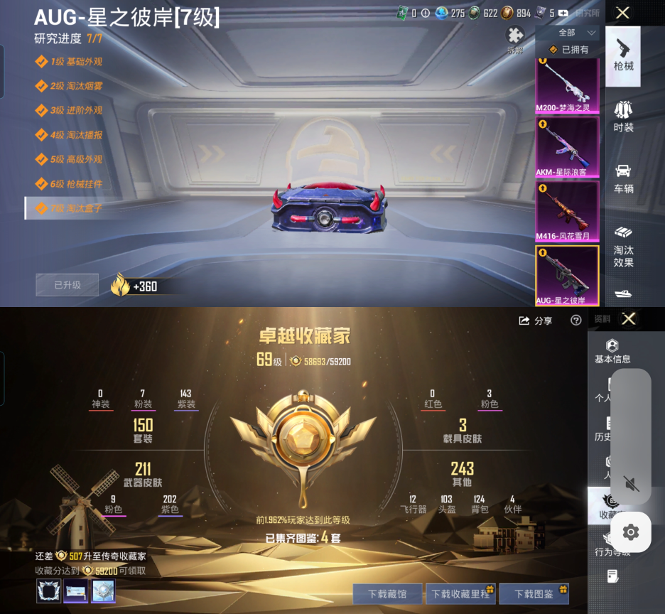 3载具-7粉装-9特效枪-150套装-228枪皮-12王牌印记-坚韧铂金Ⅴ-72448热力值