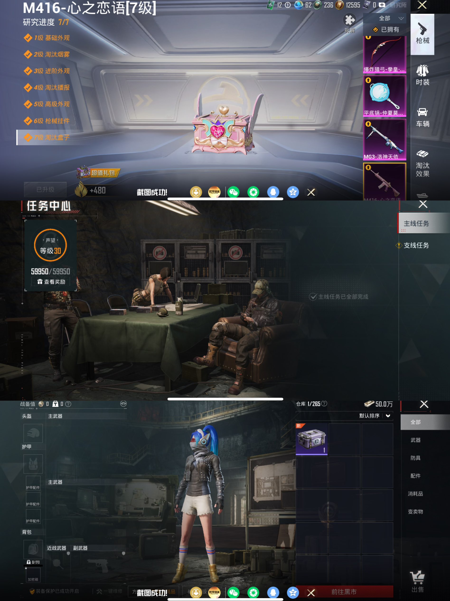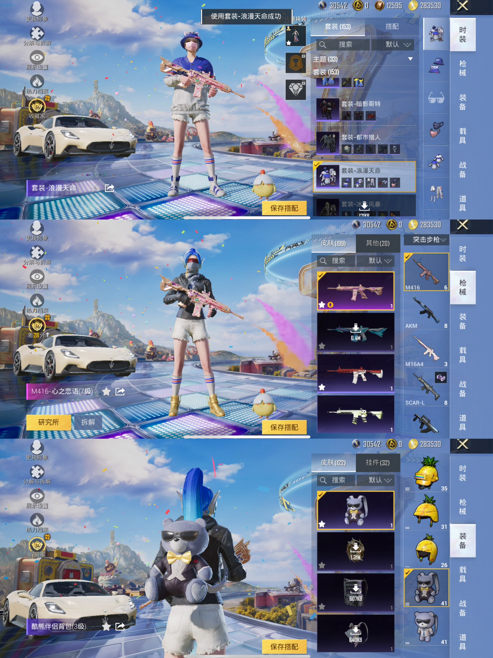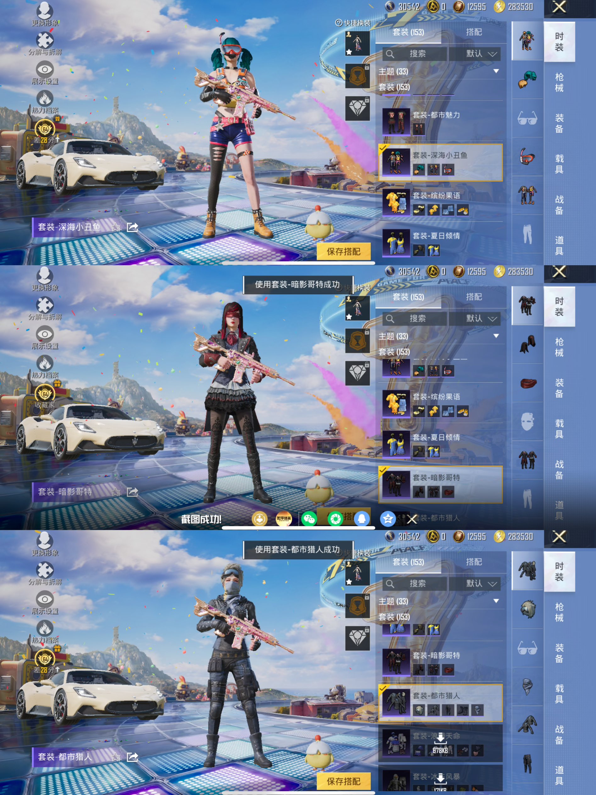 【1载具-5粉装-7特效枪 梦幻火箭 都市猎人,深海小丑鱼,派对舞王,小丑鱼,暗影哥特,浪漫天命 心之恋语[7级]】苹果手Q-1载具-5粉装-7特效枪-153套装-199枪皮-15王牌印记-坚韧铂金Ⅴ-63114热力值【1载具】玛莎拉蒂MC20(星石白)【5粉装】幻影战神,筑梦精灵,梦幻火箭,角色-千金淑猫,恐龙拽拽【7特效枪】MG3-洛神天依[7级],DP-28-豹影疾电[5级],平底锅-仲夏莫