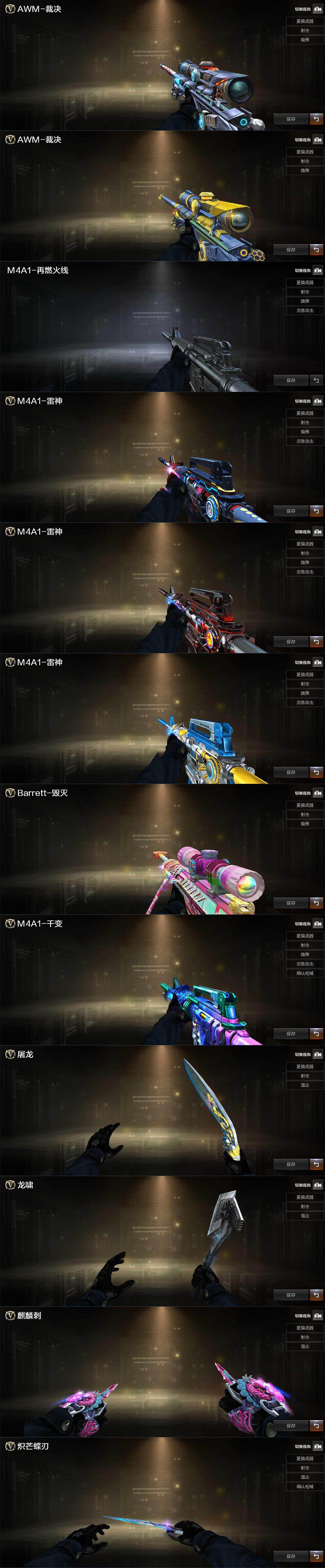 【音效卡】:AWM-裁决音效卡,沙鹰-修罗-盛典舞曲音效卡*2,Barrett-碧霄极光音效卡,炼狱-百战金芒-庆典舞曲音效卡,死神-雪域霜狐-怀旧音效卡