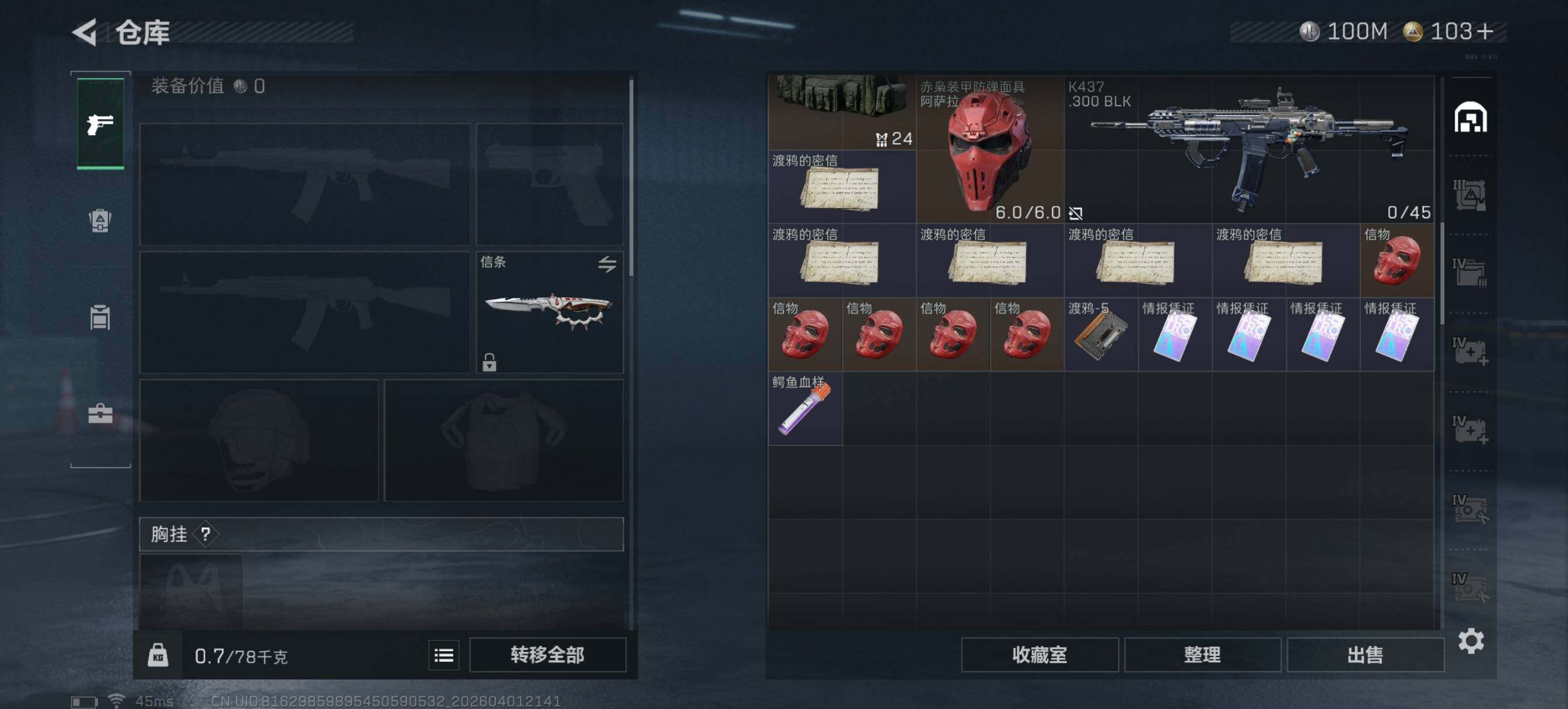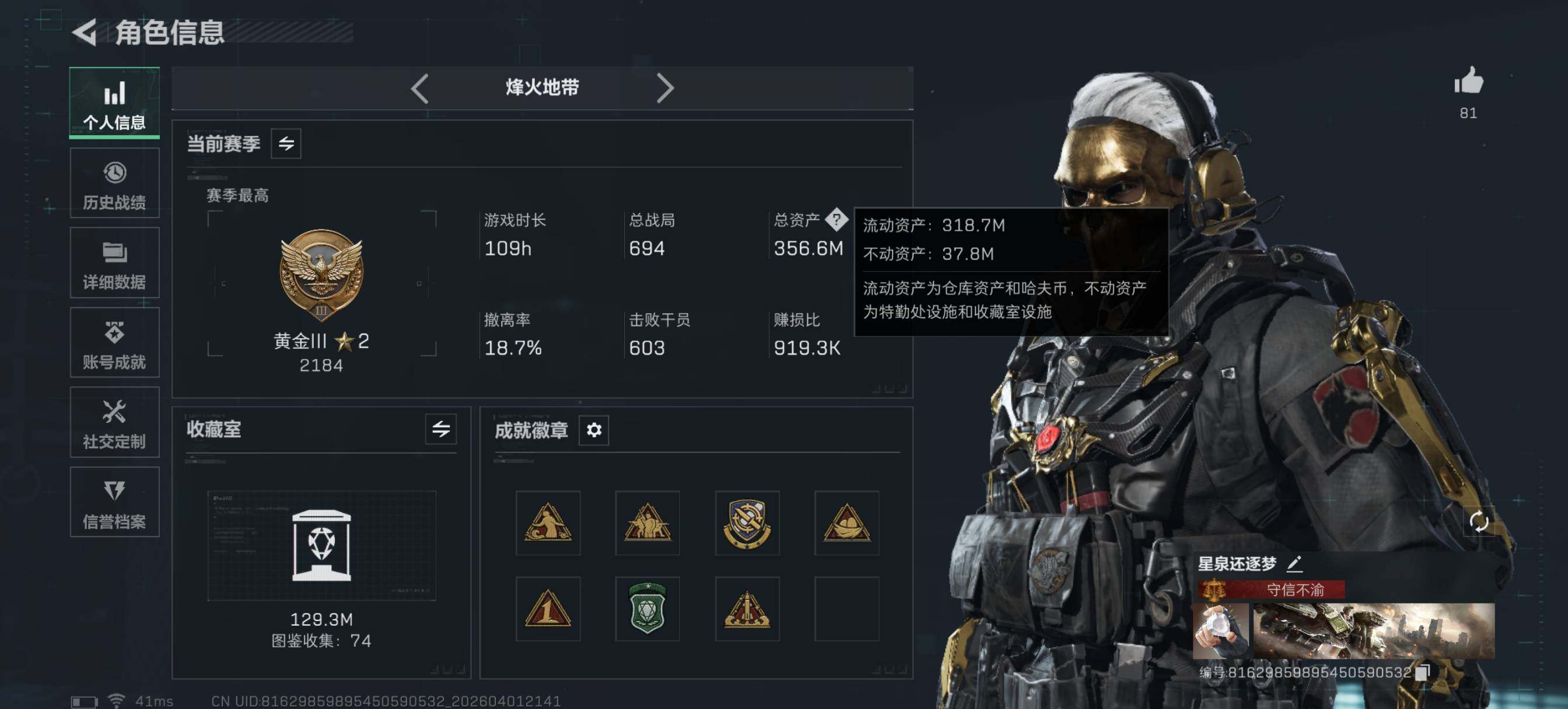 356m总资产-100412k哈夫币-60烽火等级-黄金-21战场等级-列兵