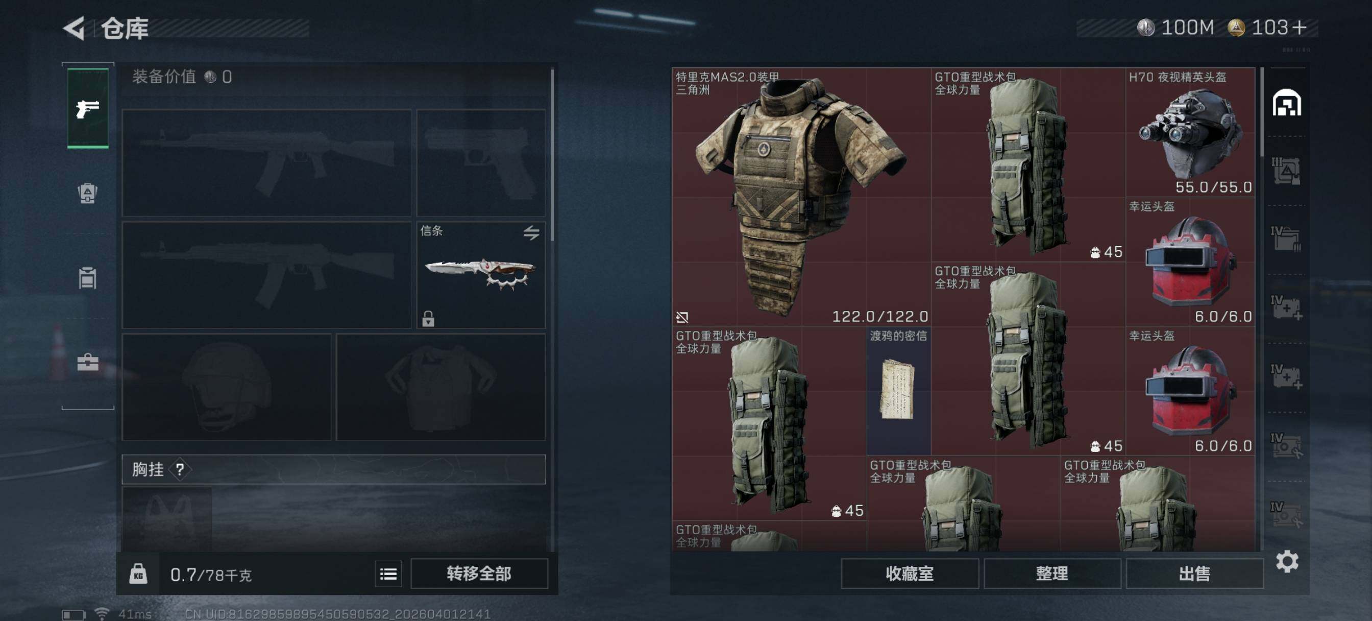 【特价出售/店主推荐】356m总资产-100412k哈夫币-60烽火等级-黄金-21战场等级-列兵