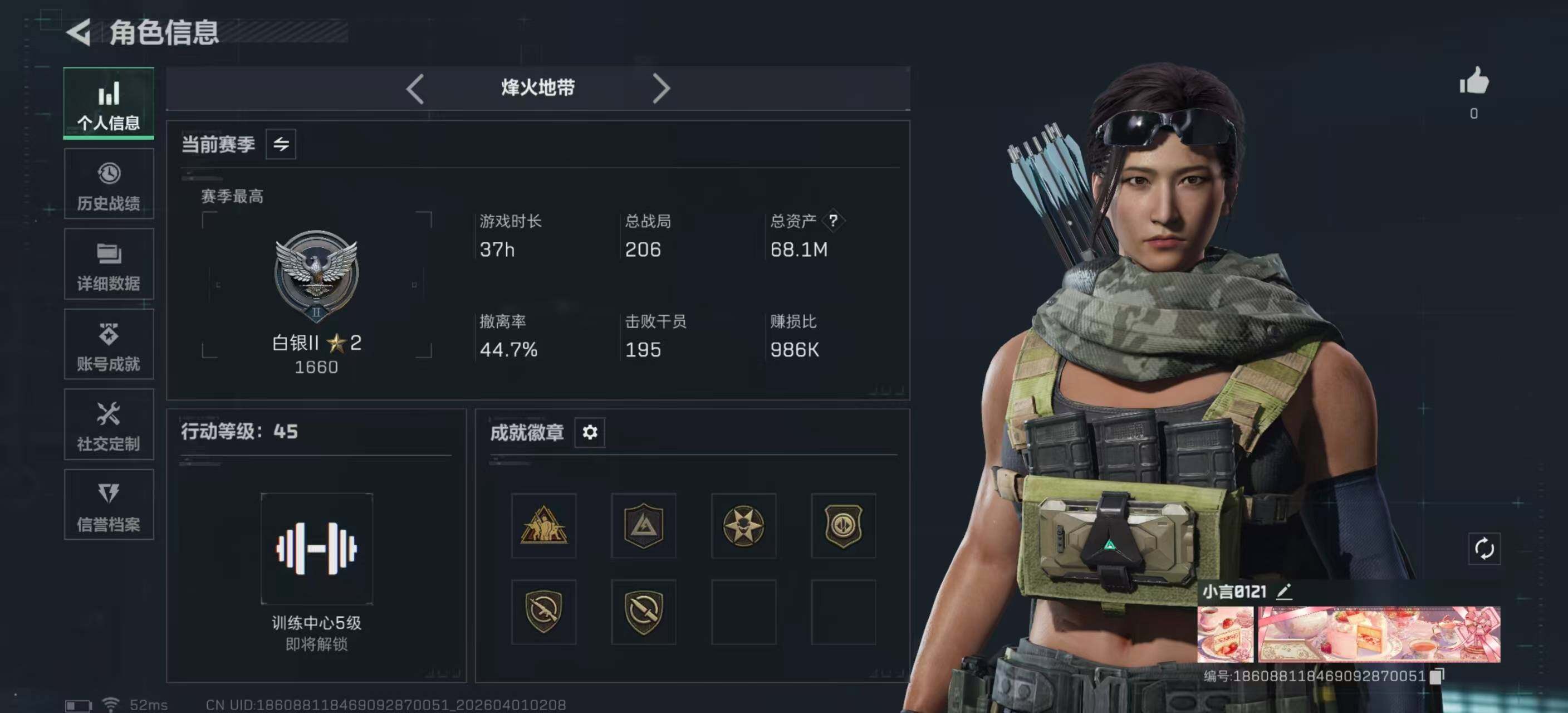 68m总资产-12928k哈夫币-45烽火等级-白银-24战场等级-军士长