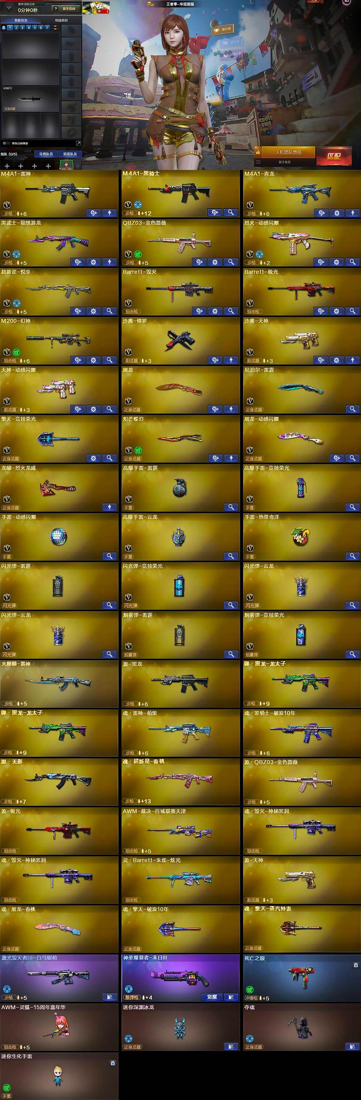 【皮肤】:M200-幻神-荣耀世冠白鲨,雷神-虎将,火麒麟-雷神,火麒麟-华夏之心,火麒麟-平天大圣,毁灭-虹光风暴 皮肤,屠龙-星火燎原