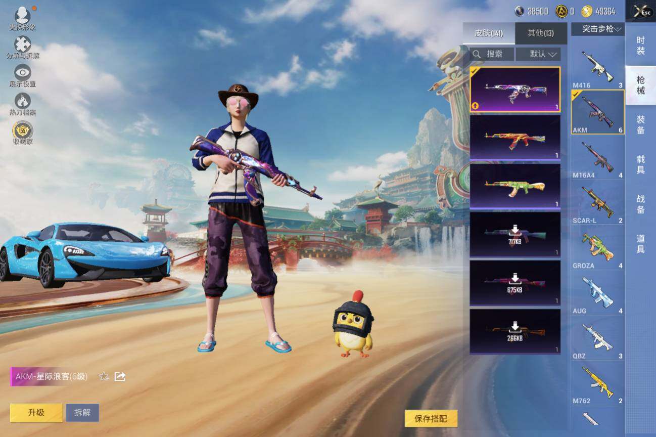 【粉色枪皮等级】:AKM-星际浪客(六级),野牛-青空秋雨(五级)