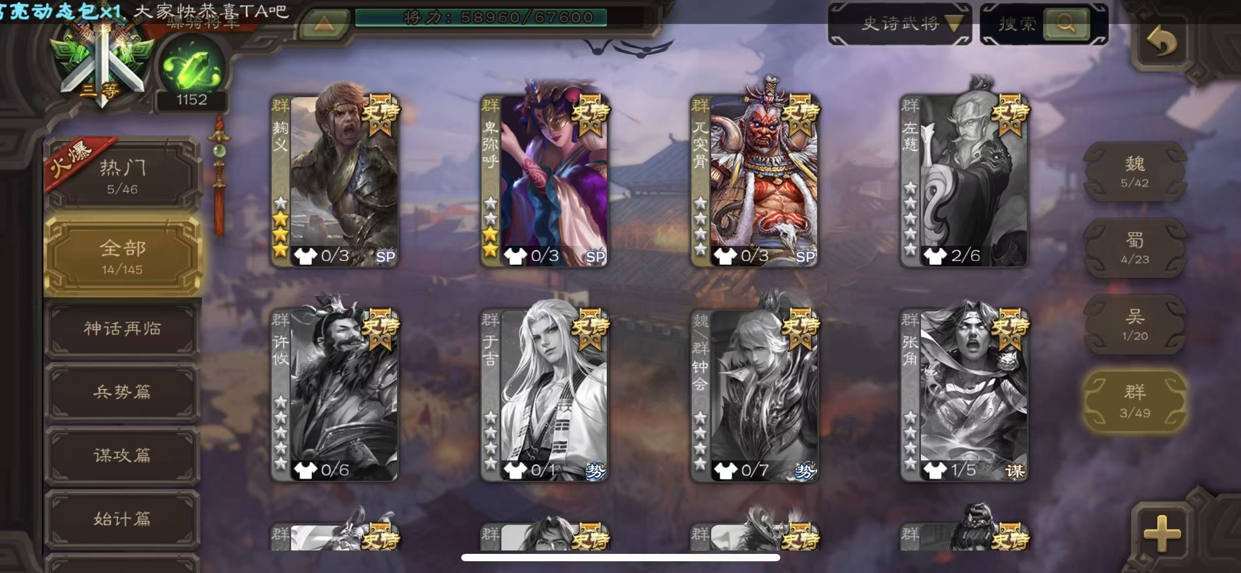 史诗武将数量: