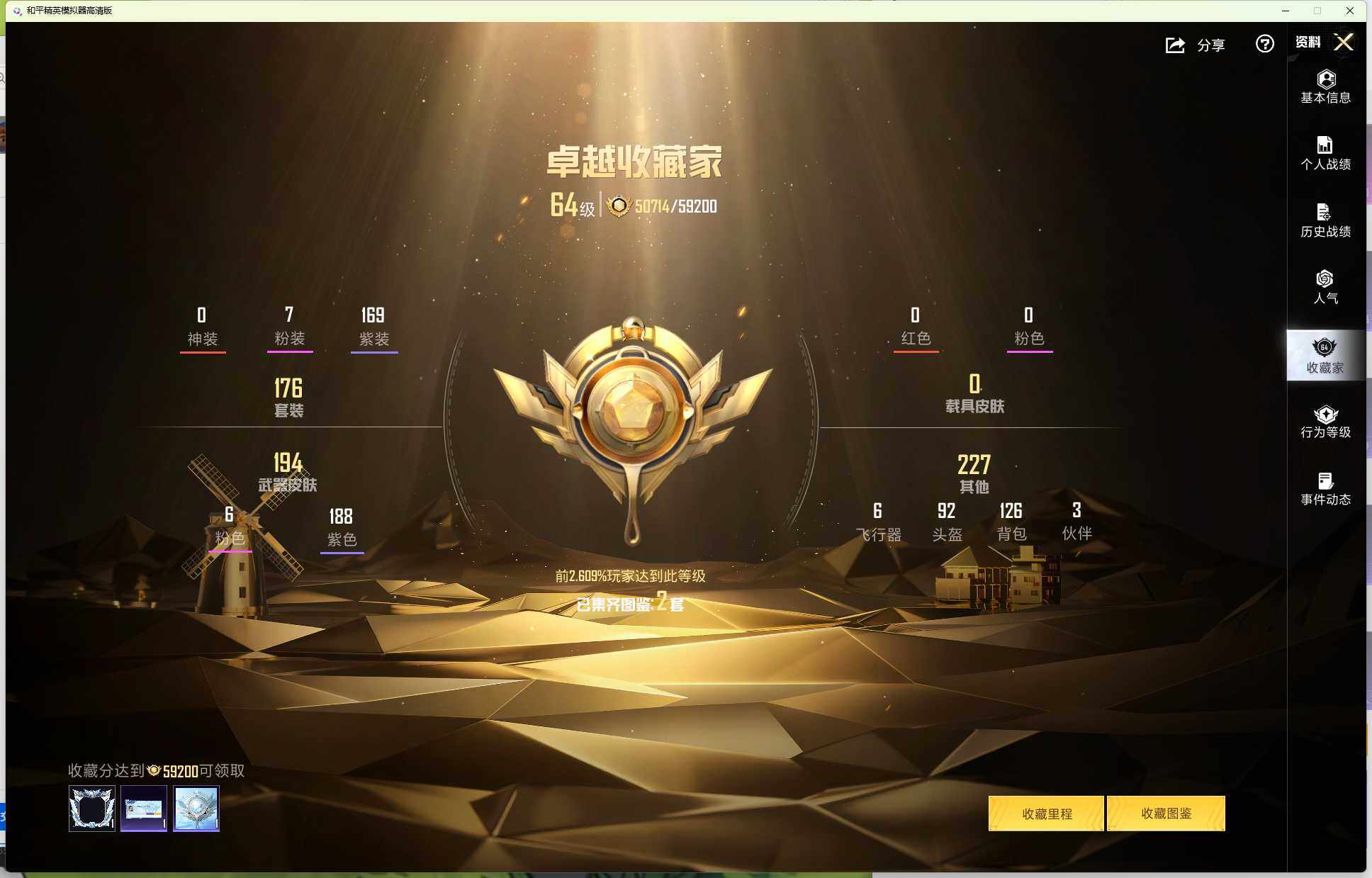 7粉装-6特效枪-0载具-2粉色飞行器-71140热力值-7王牌印记-176套装-226枪皮