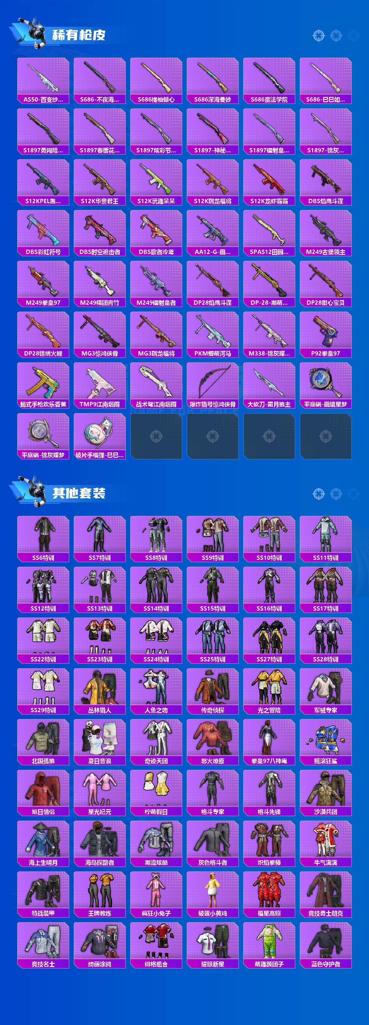【HP3357】174套装/枪械9/装备357/载具3/战备162/王牌印记8/热力值94338/七级AKM-炫紫旋律/七级SCAR-L-梦幻火箭/五级M416-电玩时刻/七级AUG-星之彼岸/六级M762-电糖天使/五级ACE32-萌骑漫游/五级AKS-74U-森灵之息/五级Kar98K-巳巳如意/五级Mk14-福马献瑞/粉装-梦幻火箭/粉装-缤纷油彩/套装-龟仙人/套装-潮萌小黄鸭/套装-浪漫波比/角色-8号机/角色-Mark.06/粉装-深海曼妙/粉装-木曜青龙/粉装-精灵迷巫/粉装-天启