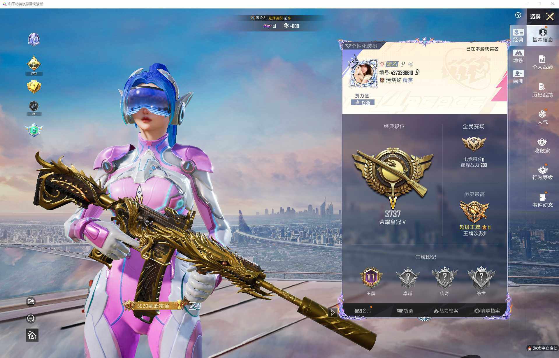7粉装-4特效枪-0载具-4粉色飞行器-60008热力值-11王牌印记-143套装-183枪皮
