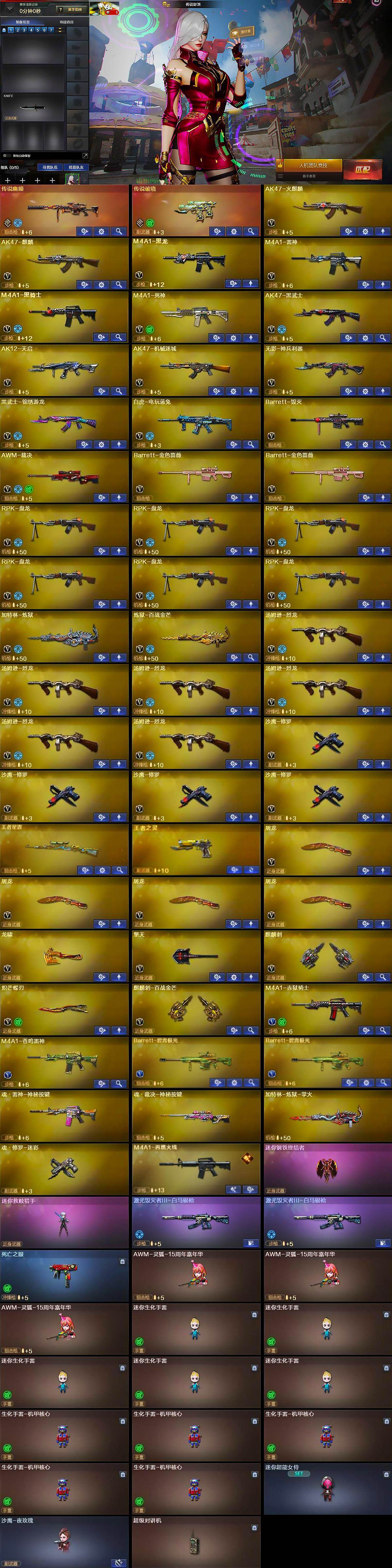 【热门武器】:传说幽瞳,传说破晓,死亡之眼,白虎-电玩蓝兔,M4A1-黑骑士,汤姆逊-烈龙*6,RPK-盘龙*6,加特林-炼狱,沙鹰-修罗*4,炽芒蝶刃