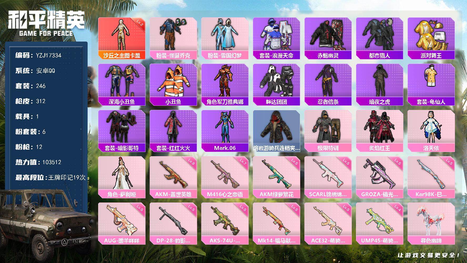 二五八一七九零_可二次安卓Q-1红装6稀有1载具6粉装12特效枪26热门24