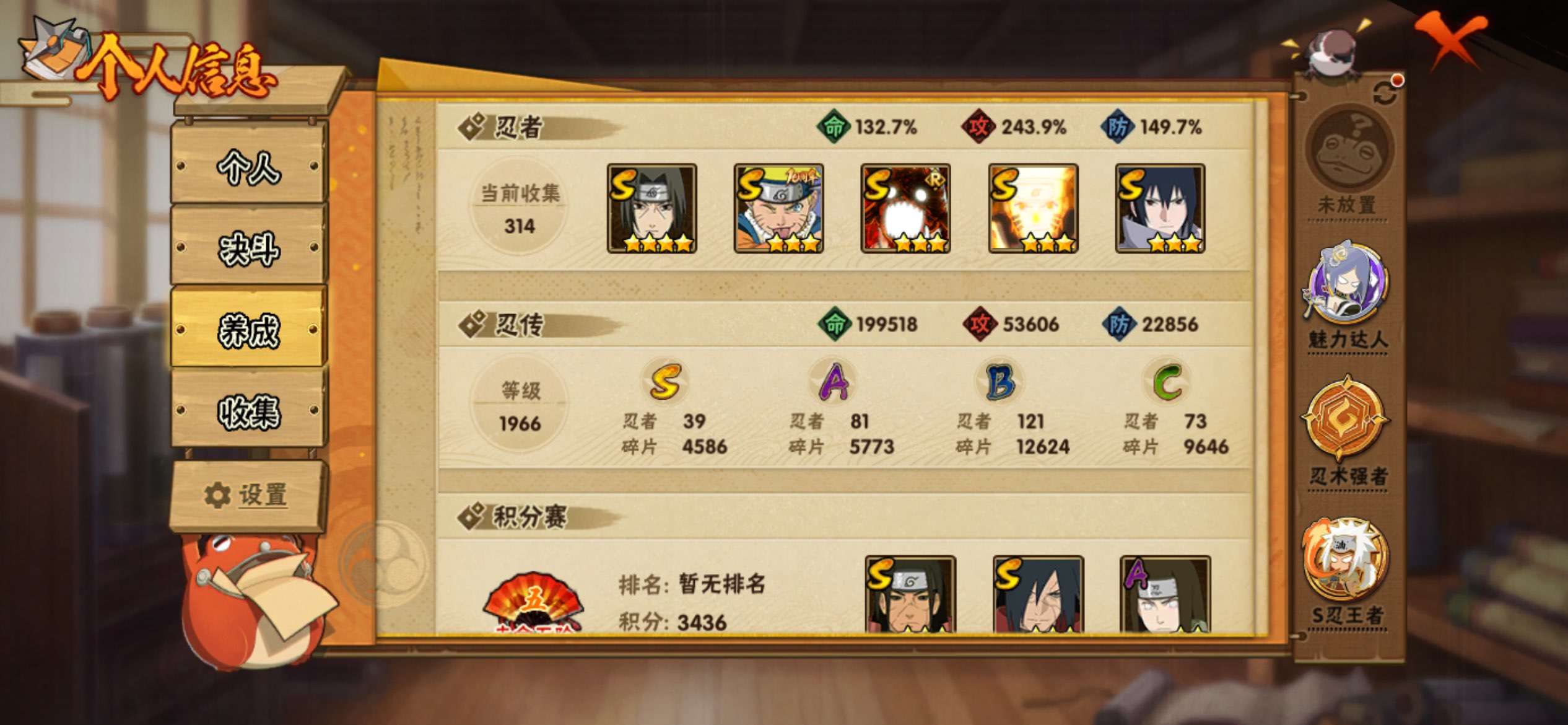 苹果QQ-可以二次!S忍者数:39- A忍者数:80-v14-1420w战力超绝极品成品号,到手即可畅玩买到就是赚到-多忍法帖忍者和直购a忍-佩恩·天道「超」-宇智波斑「五影会谈」-无「二代目土影」-千手柱间「木叶创立」-罗砂「四代目风影」-漩涡鸣人「暴怒·第六尾」-宇智波带土「暴怒」-迈特凯「惊门」-迈特凯「忍界大战」-干柿鬼鲛「鲛肌融合」-宇智波鼬「新春限定」-蝎「百机操演」-等-