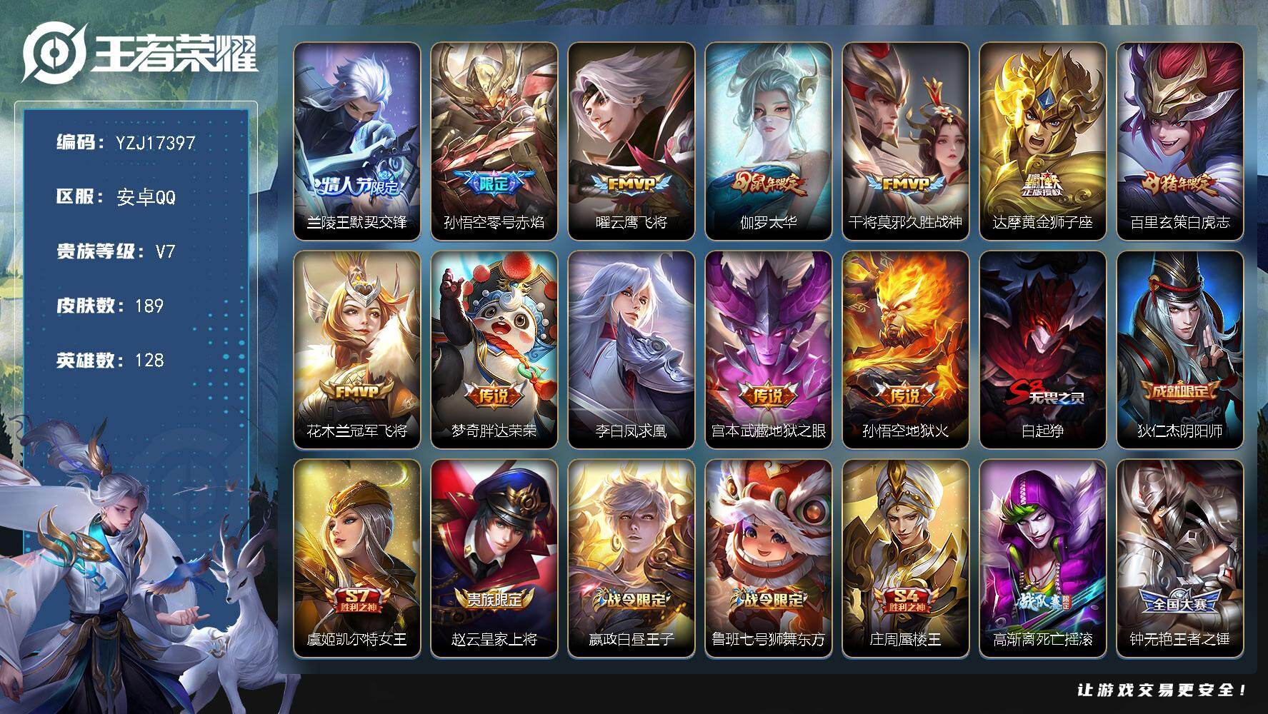 二五八一九五五__不可二次安卓q-V7-189皮肤12传说极品打野小号绝版梅