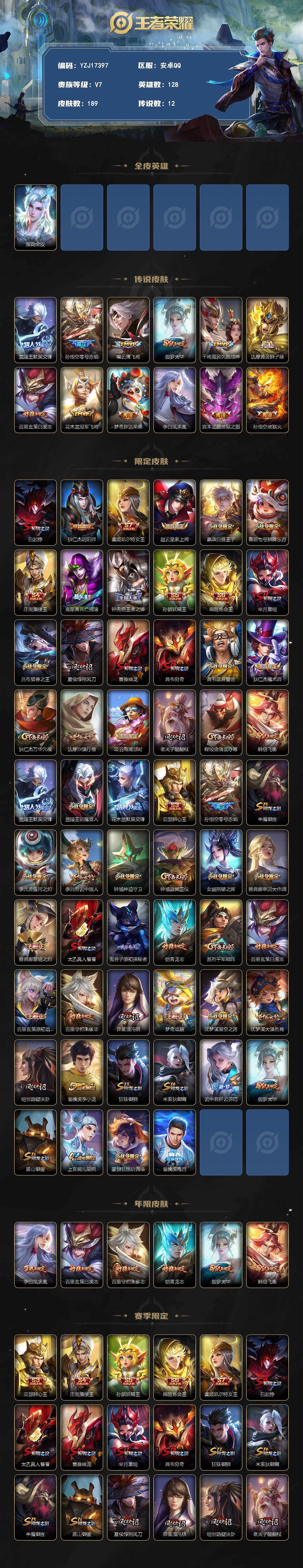 _不可二次安卓q-V7-189皮肤12传说极品打野小号绝版梅西31段打野2金标元芳庄周10银标21铜标【传说】凤求凰白虎志太华零号赤焰默契交锋男地狱火云鹰飞将久胜战神冠军飞将黄金狮子座胖达荣荣地狱之眼【热门】神威梅西白虎志青龙志朱雀志太华飞衡默契交锋女猎兽之王蓝屏警告神迹守卫钟馗狮舞东方朔望之晖星空之诺银河之约冰冠公主原初追逐者黎明之约S神来了梁祝狂想玩偶喵无限星赏官原初探秘者李小龙水晶猎龙者暗隐