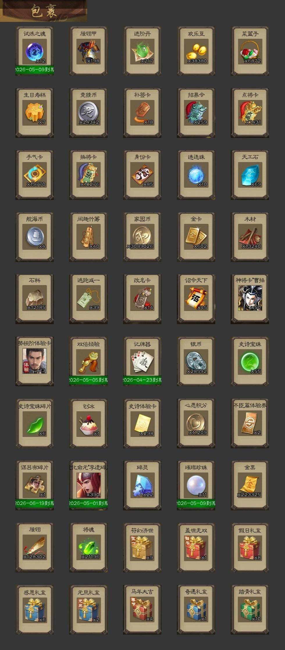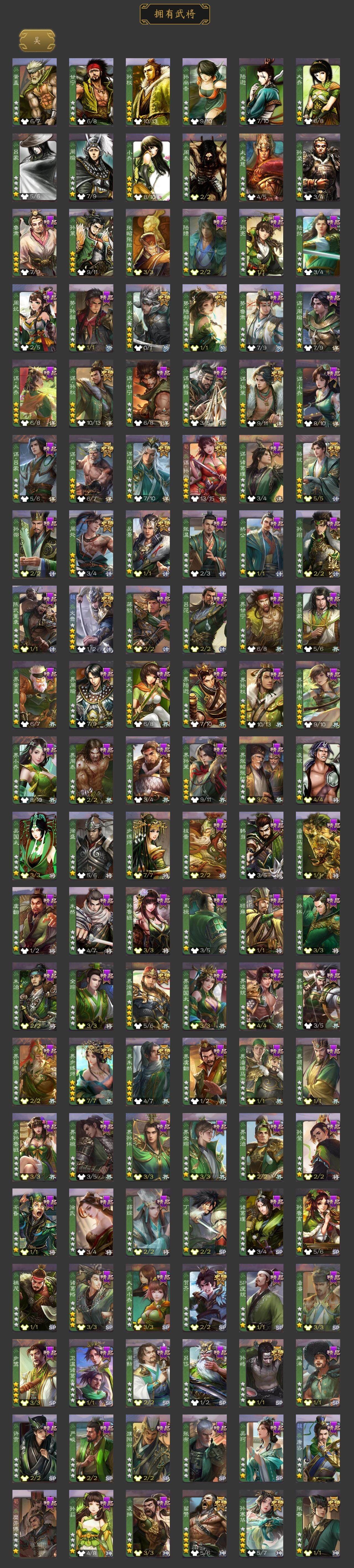 官阶:大将军;VIP等级:VIP20;史诗武将数量:138;动态皮肤数量:188;武将总数:579;史诗宝珠数量:55;将魂数量:21196;神将:16;魏国史诗武将:112;蜀国史诗武将:22;吴国史诗武将:21;群史诗武将:47