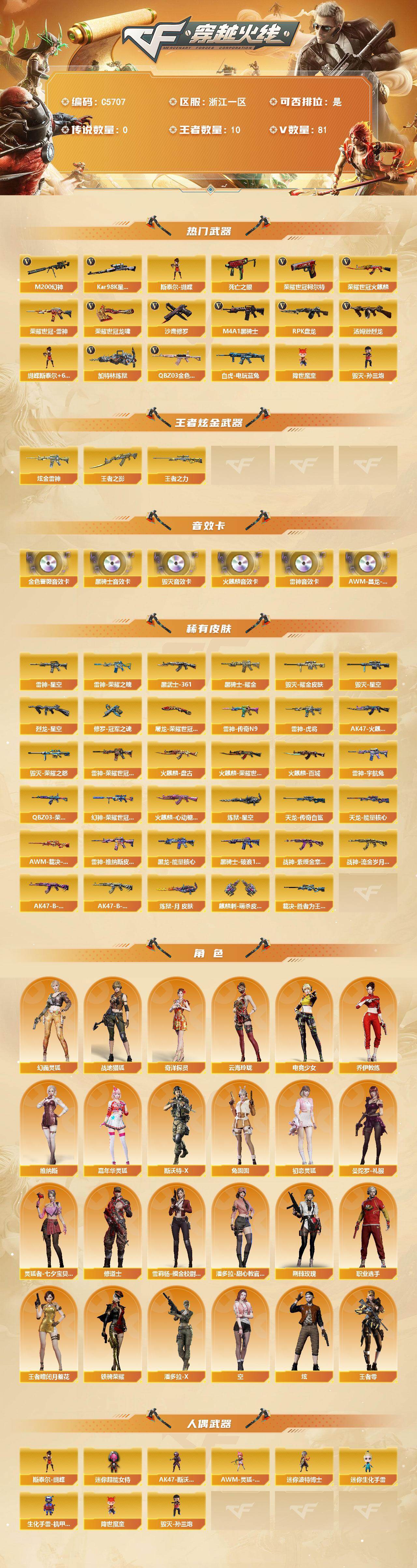 【C5707】浙江一区-89V-10王者武器数-1炫金武器数