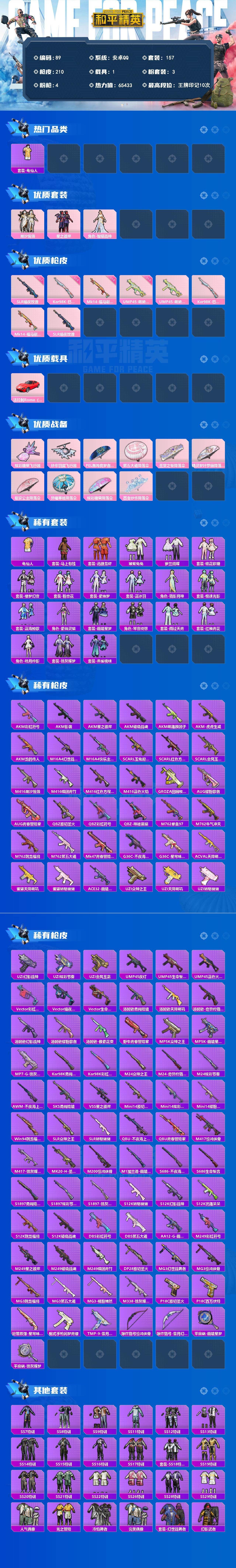 安卓手Q-1载具-3粉装-4特效枪-157套装-210枪皮-10王牌印记-荣耀皇