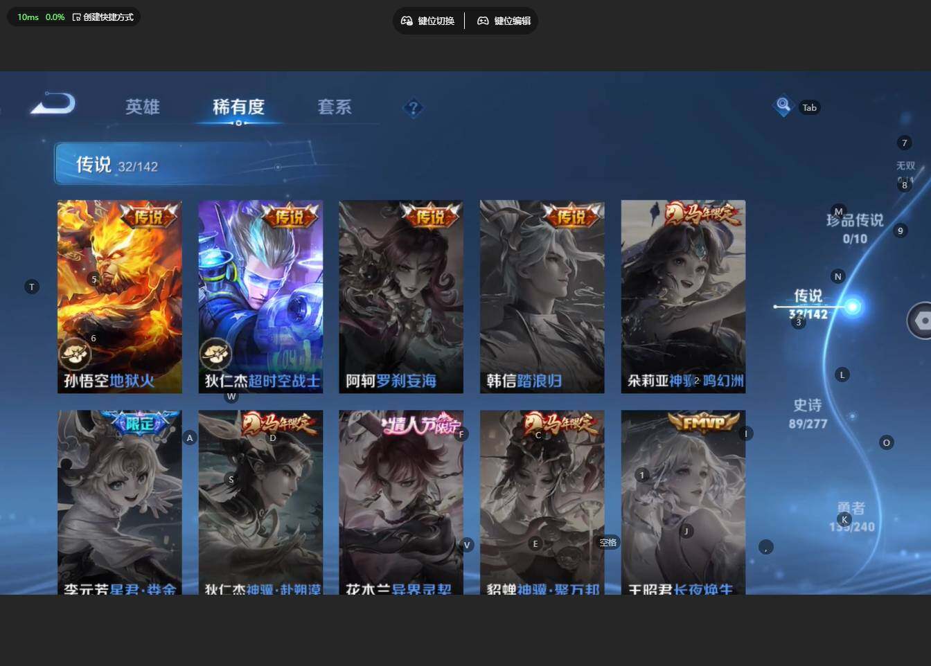 V正常!1金标!苹果WX-V8-最强王者段位-127英雄-319皮肤-2典藏皮肤-32传说-87史诗