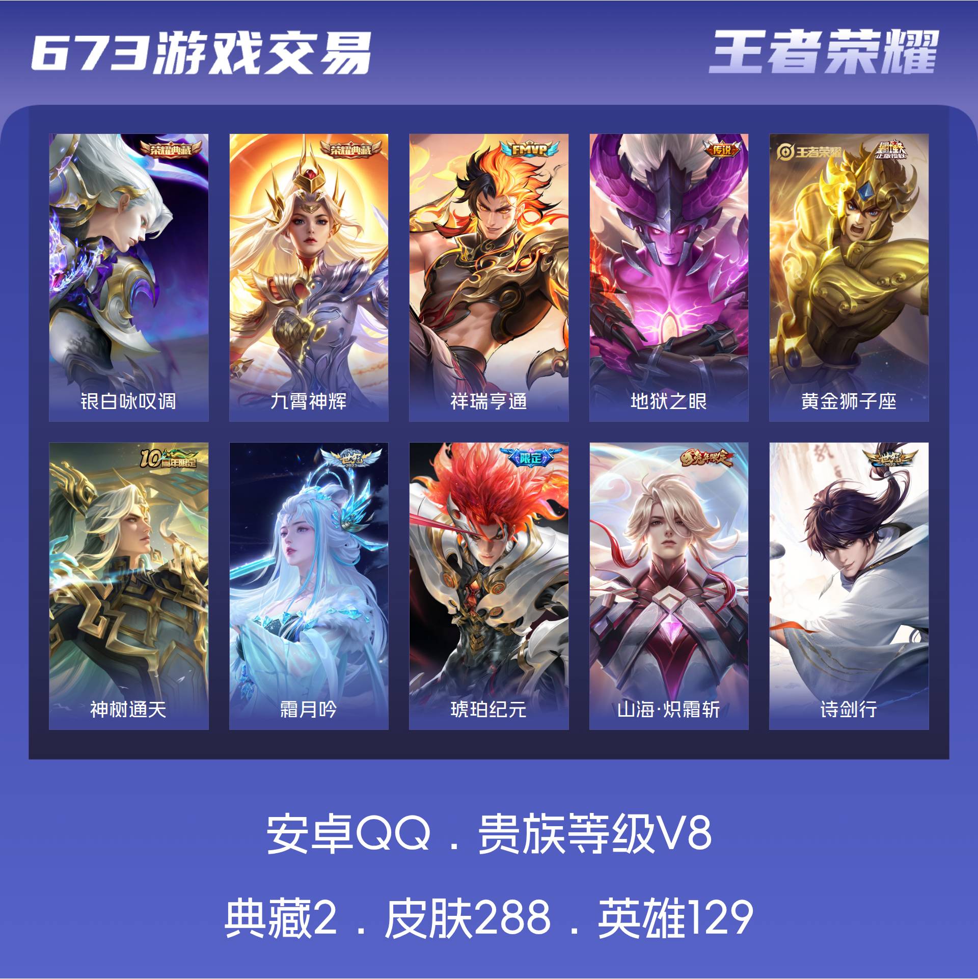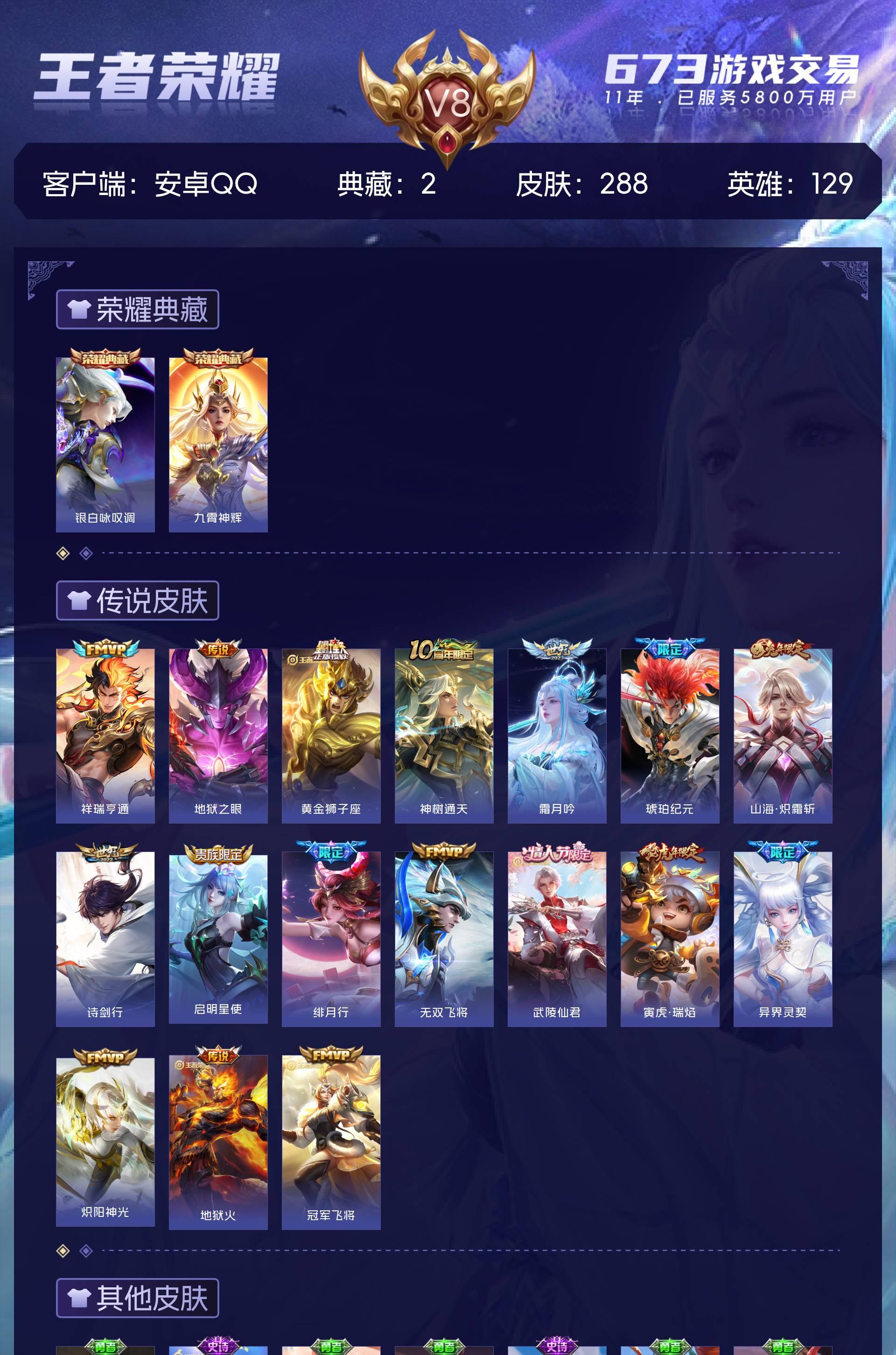 V8 皮肤288 英雄129 至尊星耀 荣耀典藏2 传说18