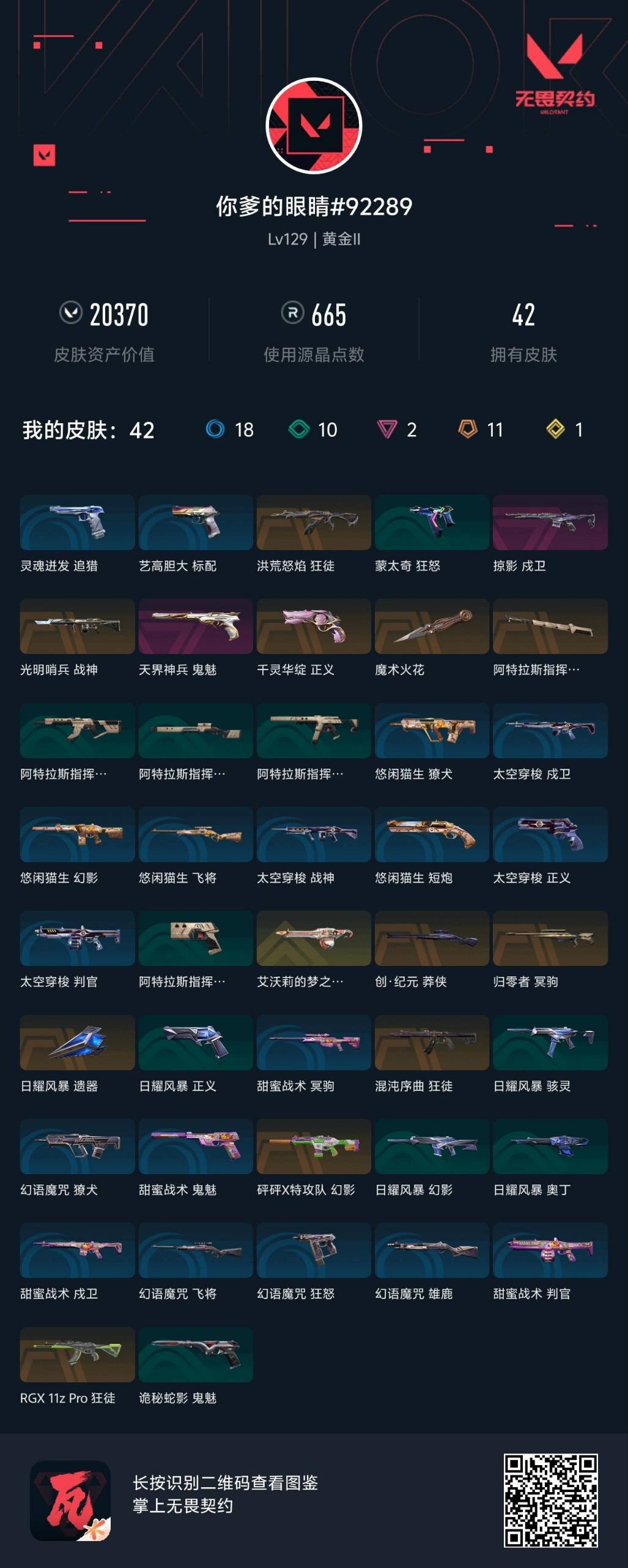 11橙皮 1金皮 2紫皮 42皮肤 29英雄 71卡面 665已用源晶 黄金段位 可