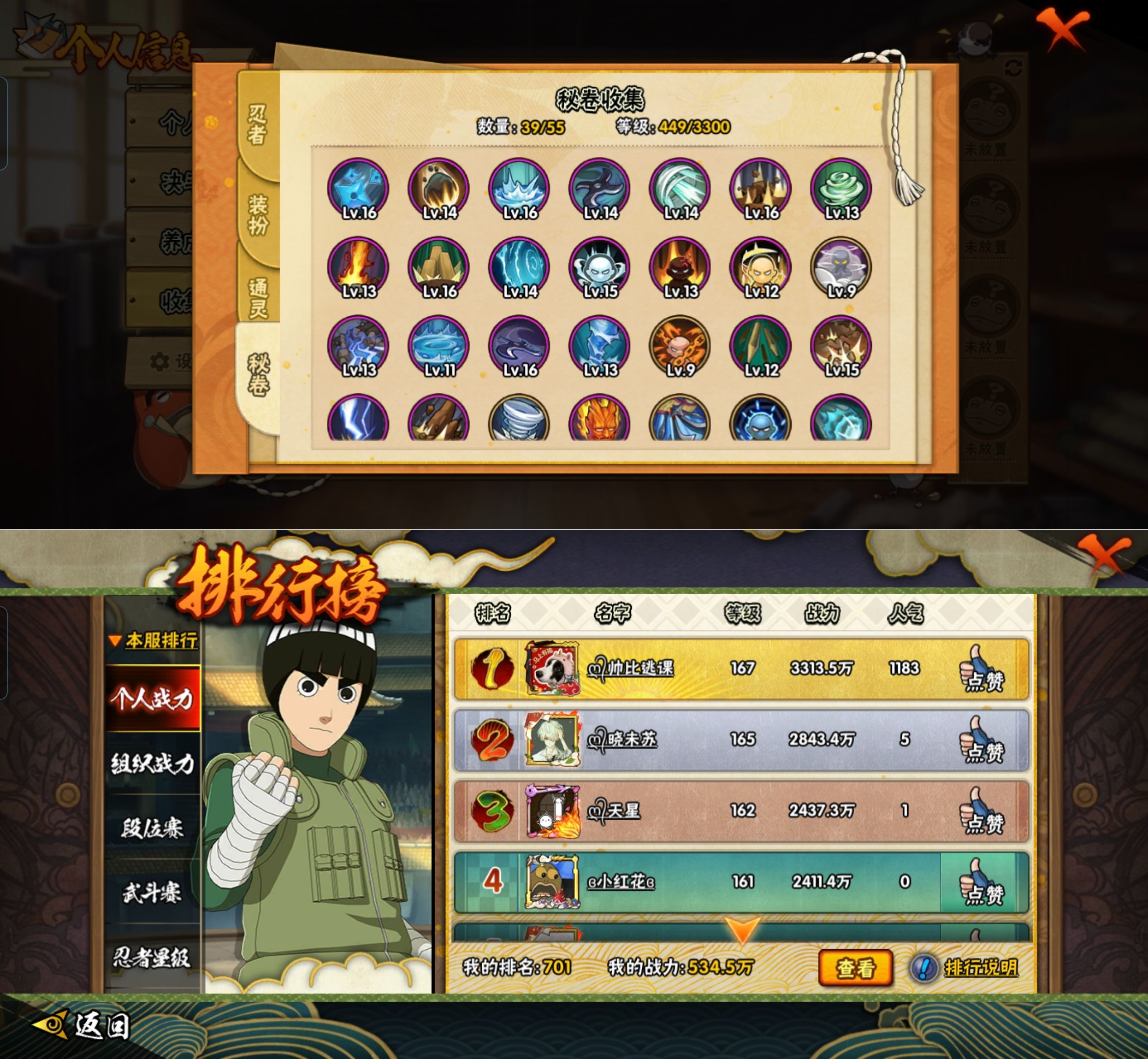 MHY4057【安卓Q S14 A28 VIP9 530w战力 通灵15】【区服】2303【等级】141【S级数量】14【A级数量】28【B级数量】55【C级数量】50【S级】大蛇丸 药师兜「仙人模式」 宇智波斑「秽土转生·解」 波风水门 宇智波鼬「秽土转生」 漩涡鸣人·宇智波佐助 宇智波鼬「须佐能乎」 旗木卡卡西「须佐能乎」 大筒木舍人「最终章」 佩恩「天道」 千手扉间「秽土转生」 春野樱「忍界大战」 自来也「舞之豪杰」 宇智波佐助「永恒万花筒」【A级】李洛克「忍界大战」 宇智波止水「新春限定