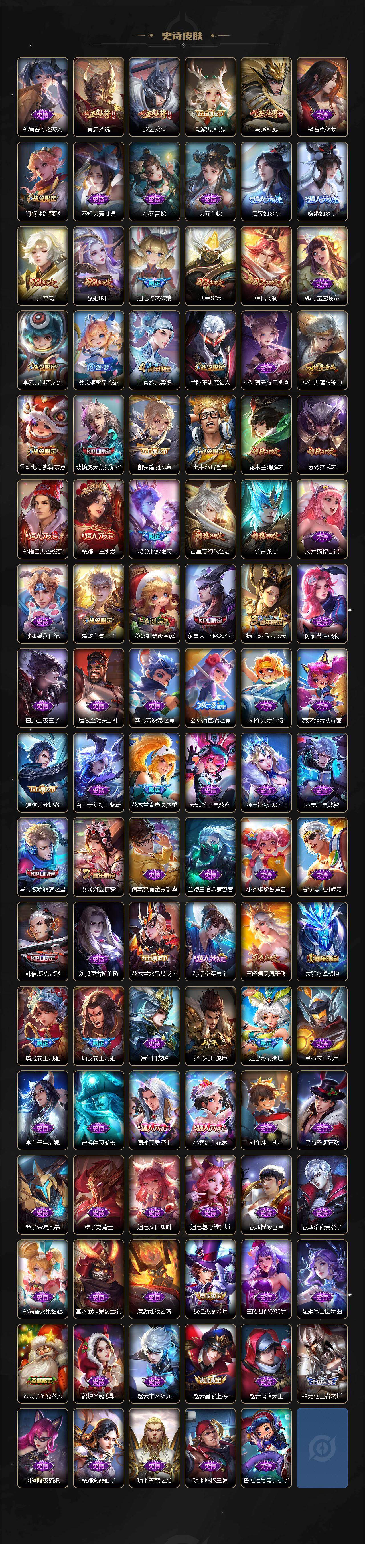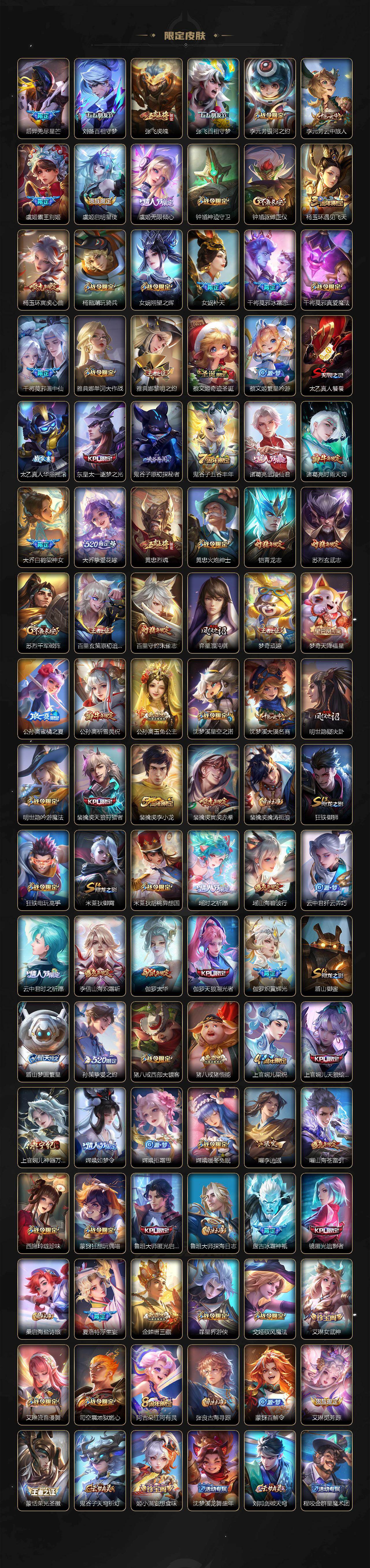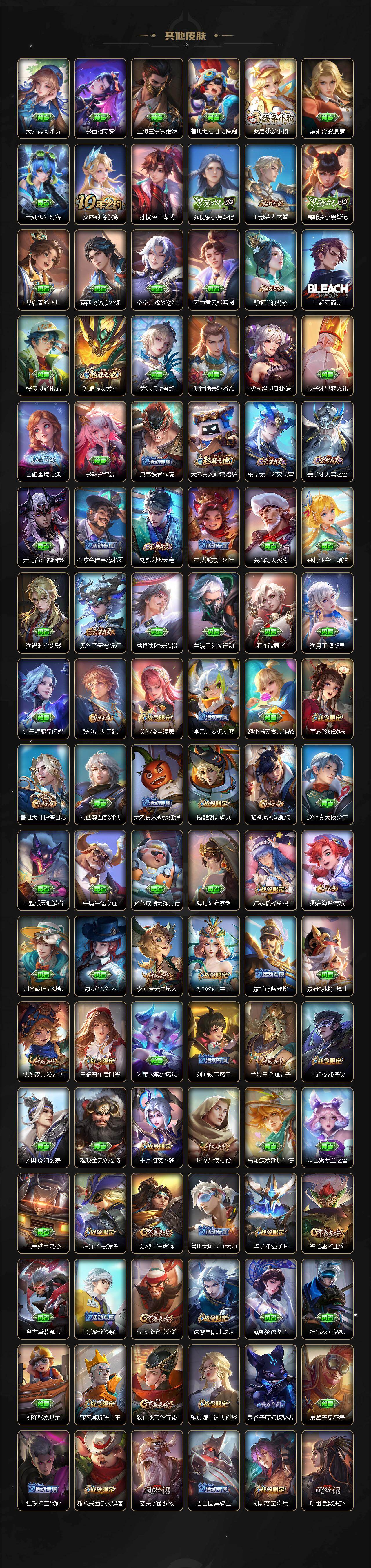 【英雄全皮】:刘邦全皮,孙权全皮,娜可露露全皮,橘右京全皮,梦奇全皮,盾山全皮,猪八戒全皮,敖隐全皮,鲁班大师全皮,夏洛特全皮,金蝉全皮,戈娅全皮,空空儿全皮,影全皮