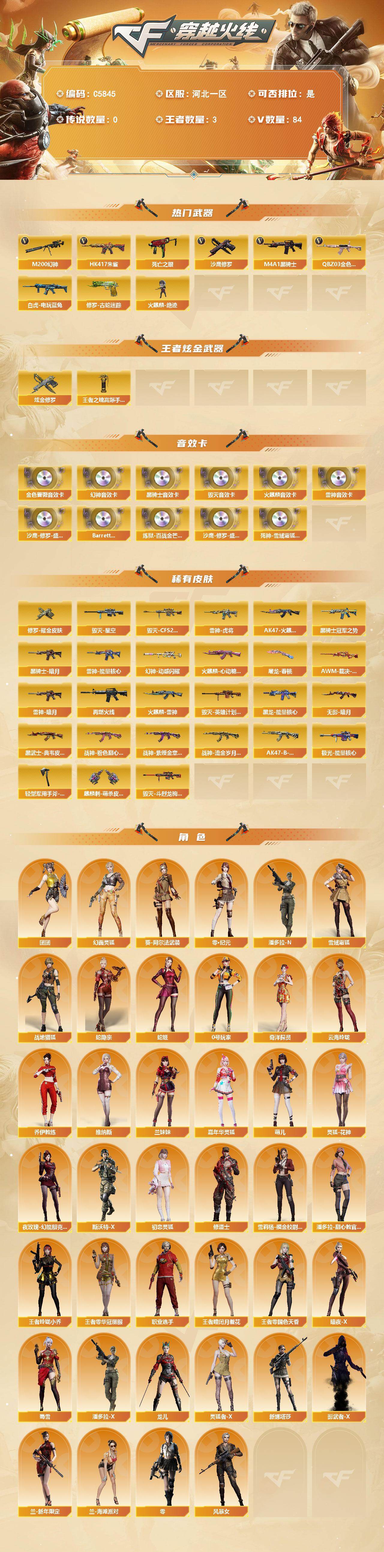 【C5845】河北一区-84V-3王者武器数-1炫金武器数