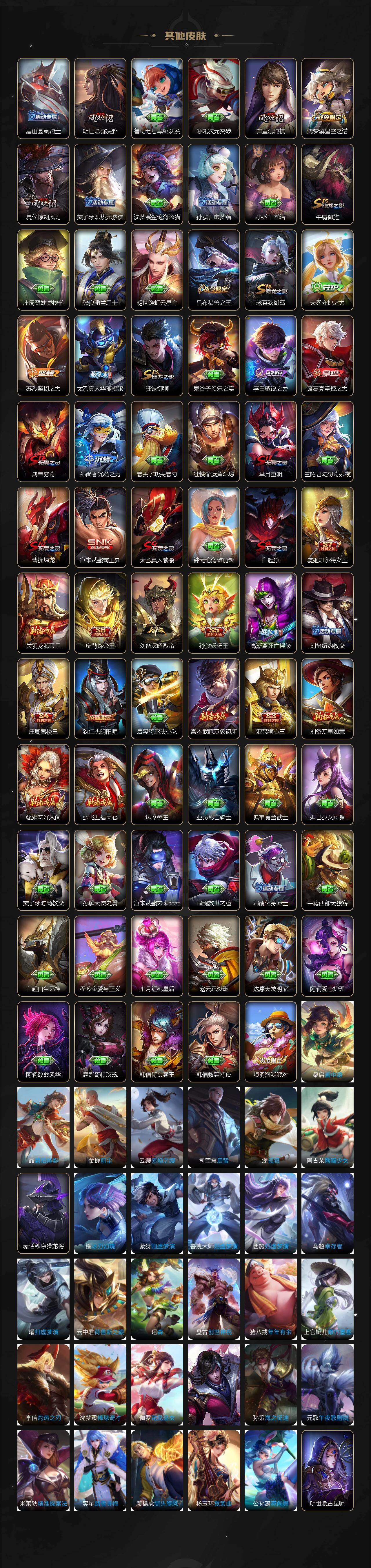 【限定皮肤】:白起狰,姜子牙天穹之誓,狄仁杰阴阳师,虞姬凯尔特女王,赵云