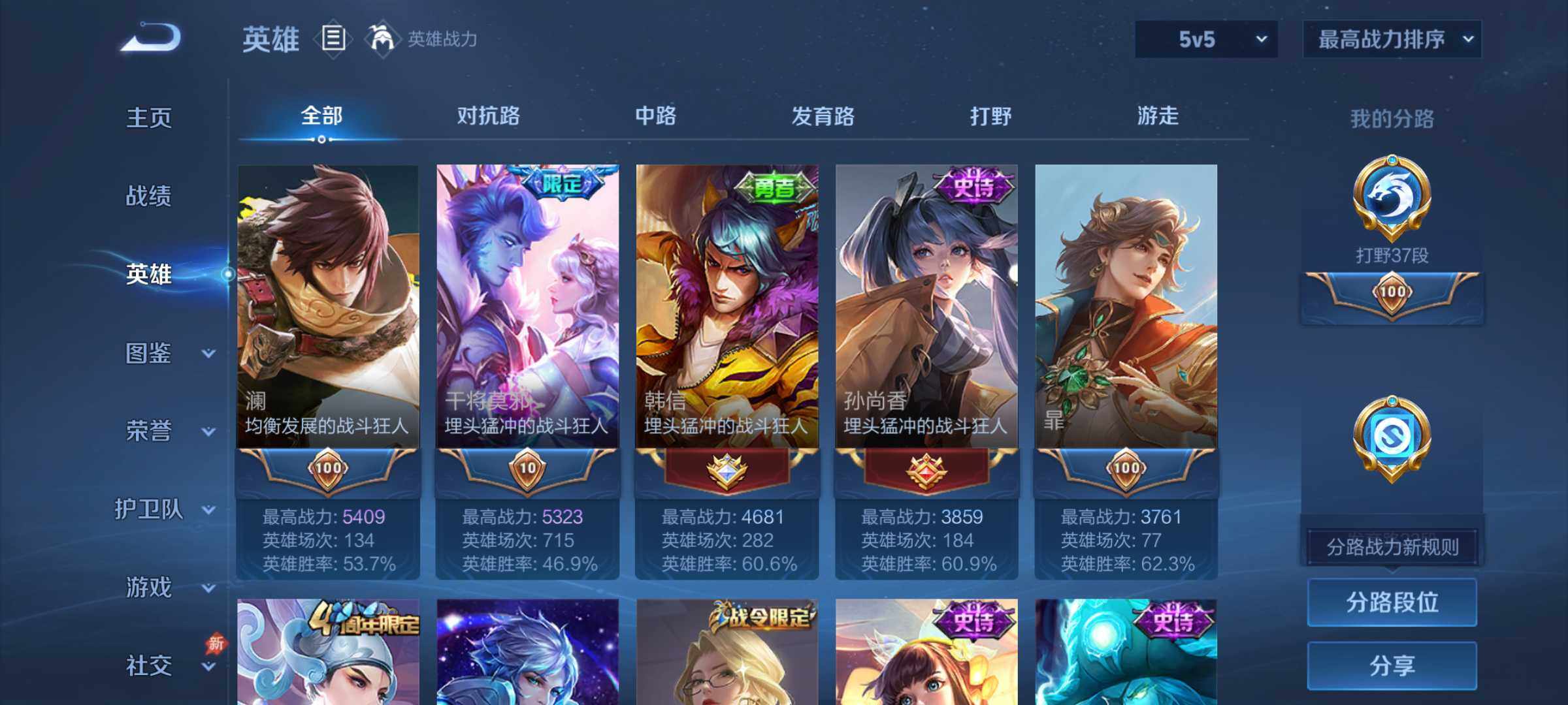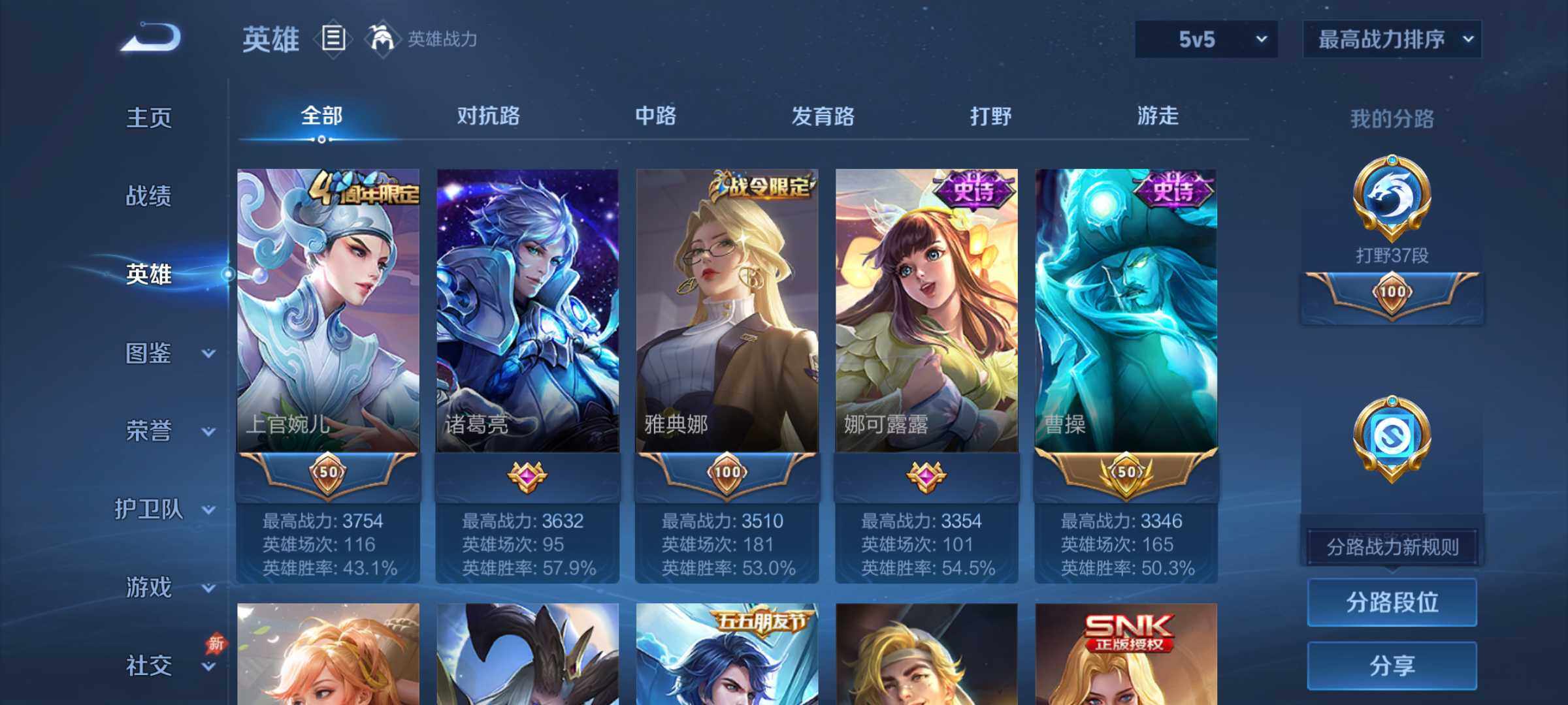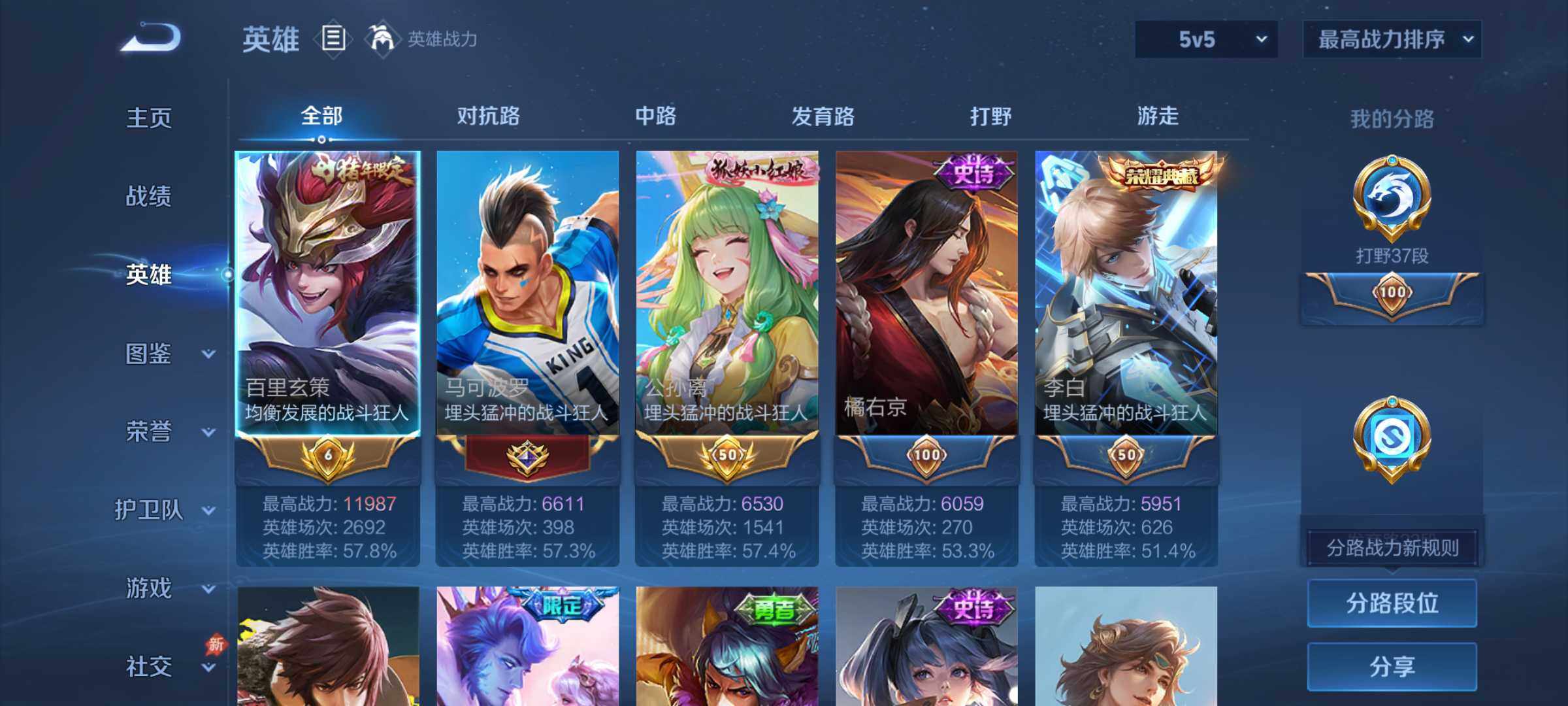 【16777286】贵族等级6/荣耀典藏数量1/传说皮肤数量2/史诗皮肤数量4