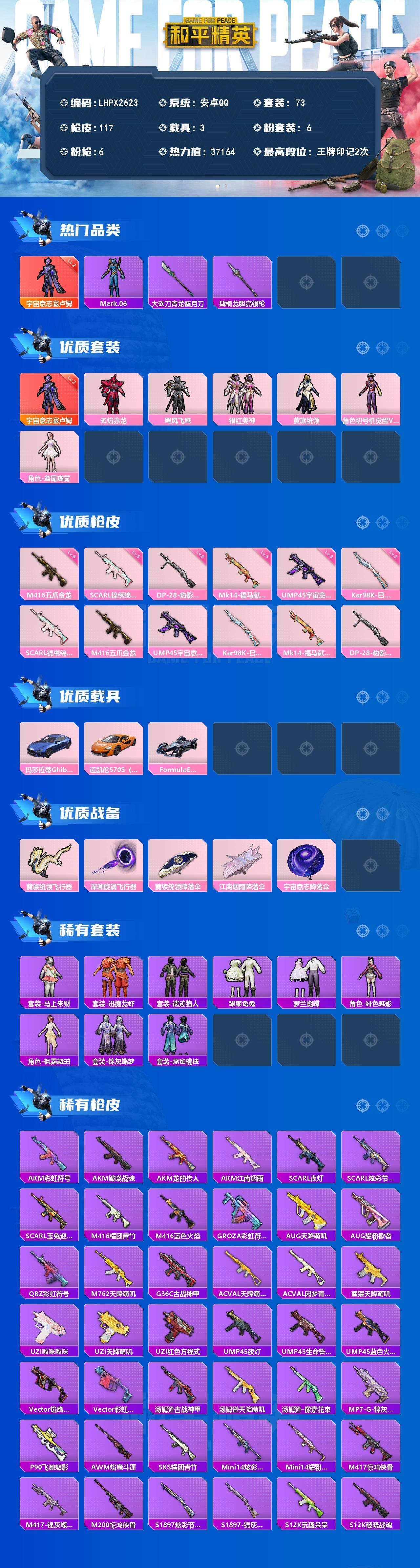 可二次【特价出售/店主推荐/神装赛卢姆觉醒螳螂蓝色玛莎精品号】安卓 手Q-1神装-6粉装-6特效枪-3载具-2粉色飞行器-37164热力值-2王牌印记-73套装-117枪皮【红色神装等级】:宇宙意志-塞卢姆(二级)【热门品类】:角色-Mark.06,大砍刀-青龙偃月刀,撬棍-龙胆亮银枪【粉色套装】:粉装-炙焰赤龙,粉装-飓风飞鹰,粉装-银红美神,粉装-黄族统领,角色-初号机 觉醒Ver.,角色-