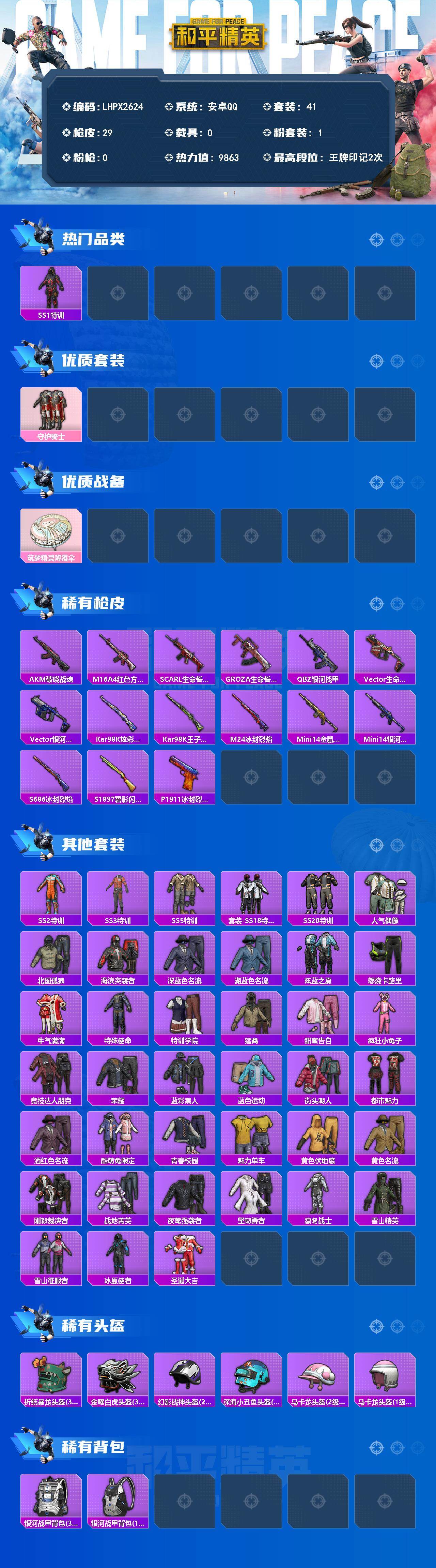 热门套装SS1特训 可二次【特价出售/店主推荐】安卓 手Q-1粉装-9863热力值-2王牌印记-41套装-29枪皮【热门品类】:套装-SS1特训【粉色套装】:粉装-守护骑士