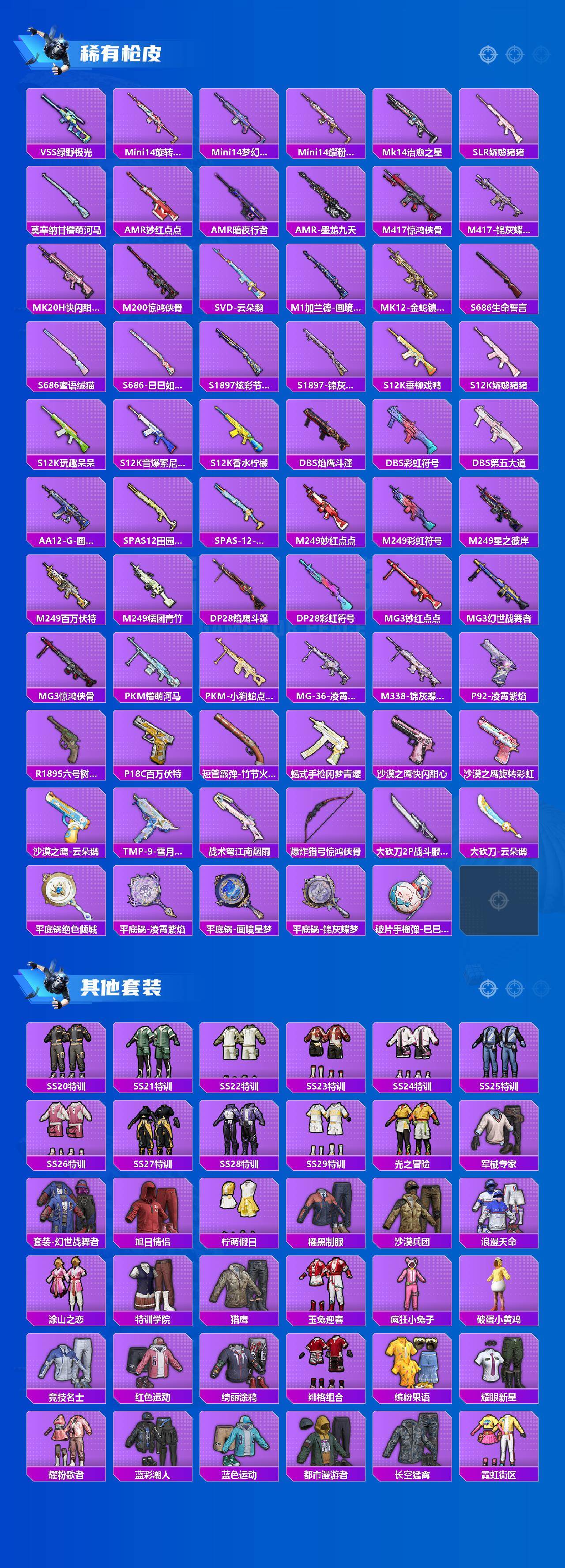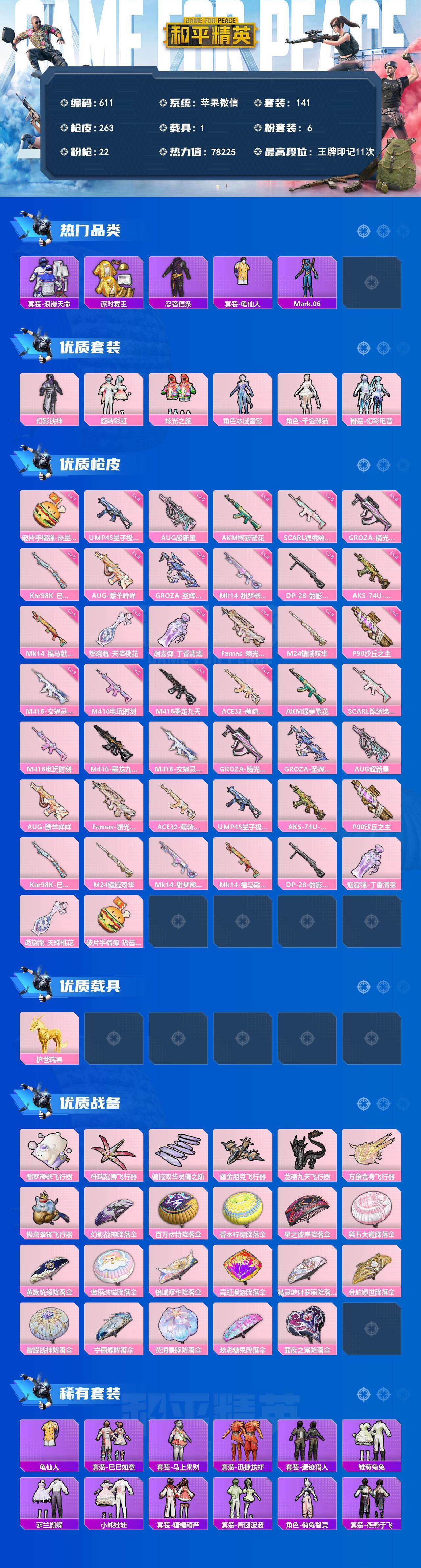 苹果 微信-6粉装-22特效枪-1载具-7粉色飞行器-78225热力值-11王牌印记-141套装-263枪皮