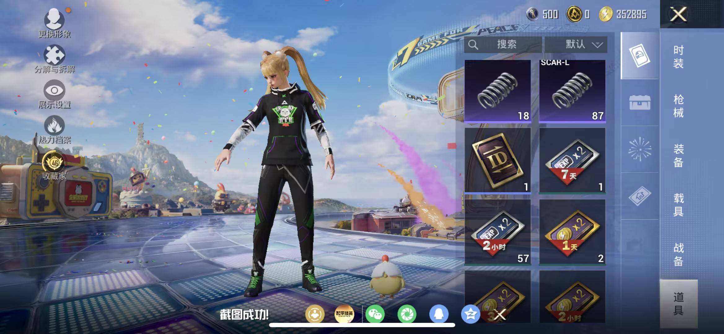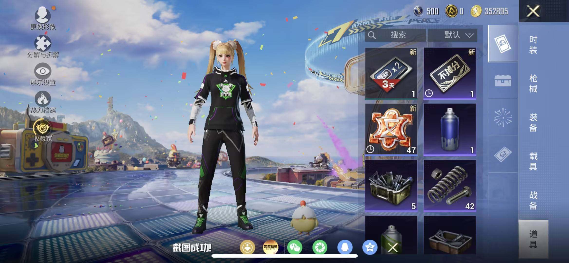 苹果 手Q-2粉装-5特效枪-0载具-1粉色飞行器-36359热力值-11王牌印记-81套装-130枪皮