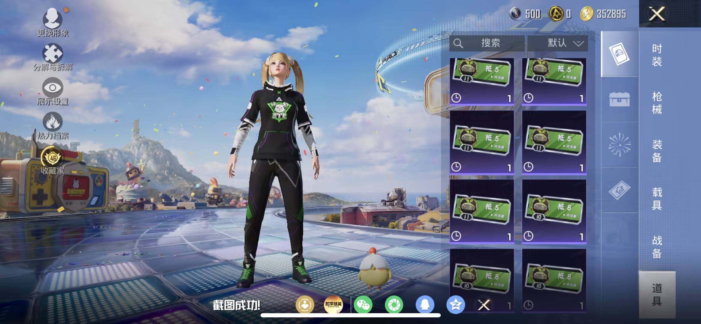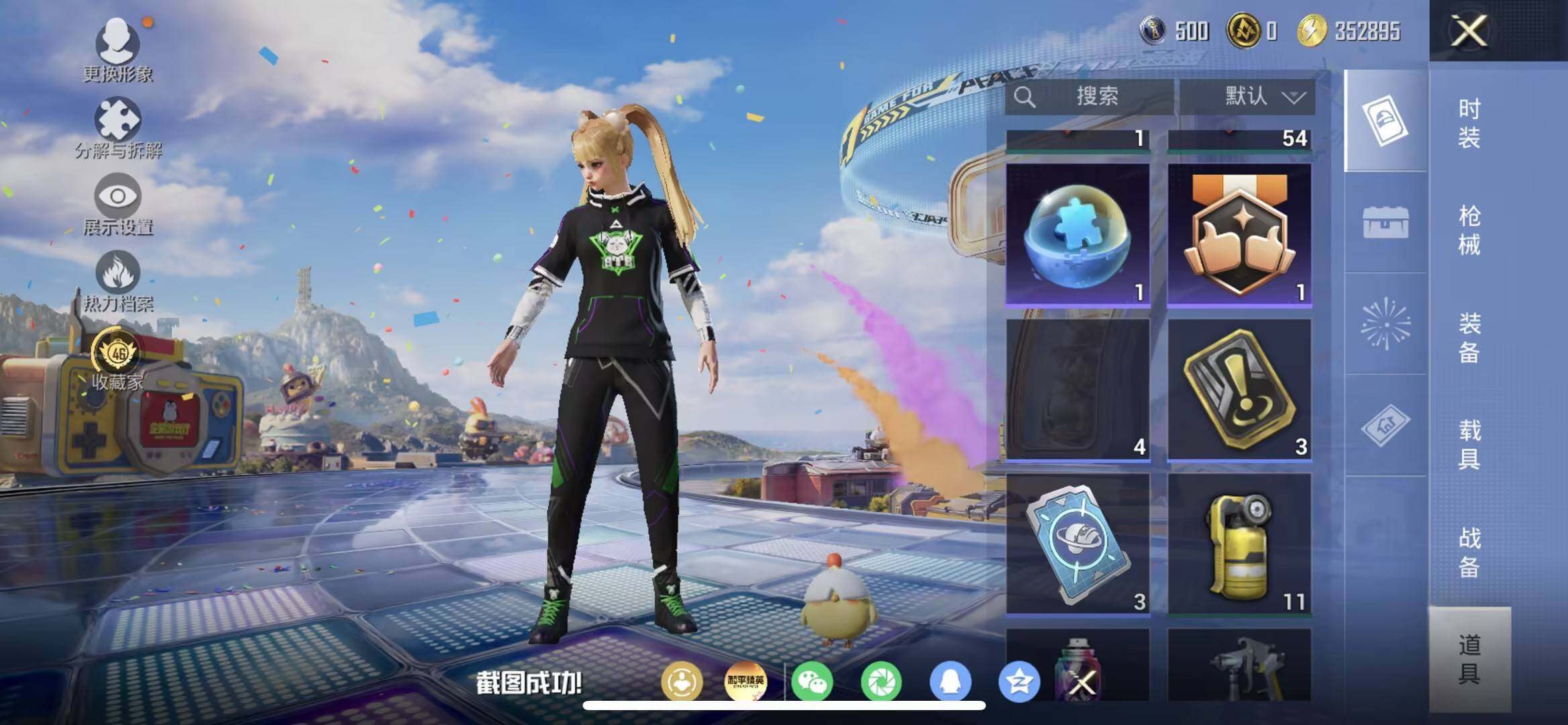 苹果 手Q-2粉装-5特效枪-0载具-1粉色飞行器-36359热力值-11王牌