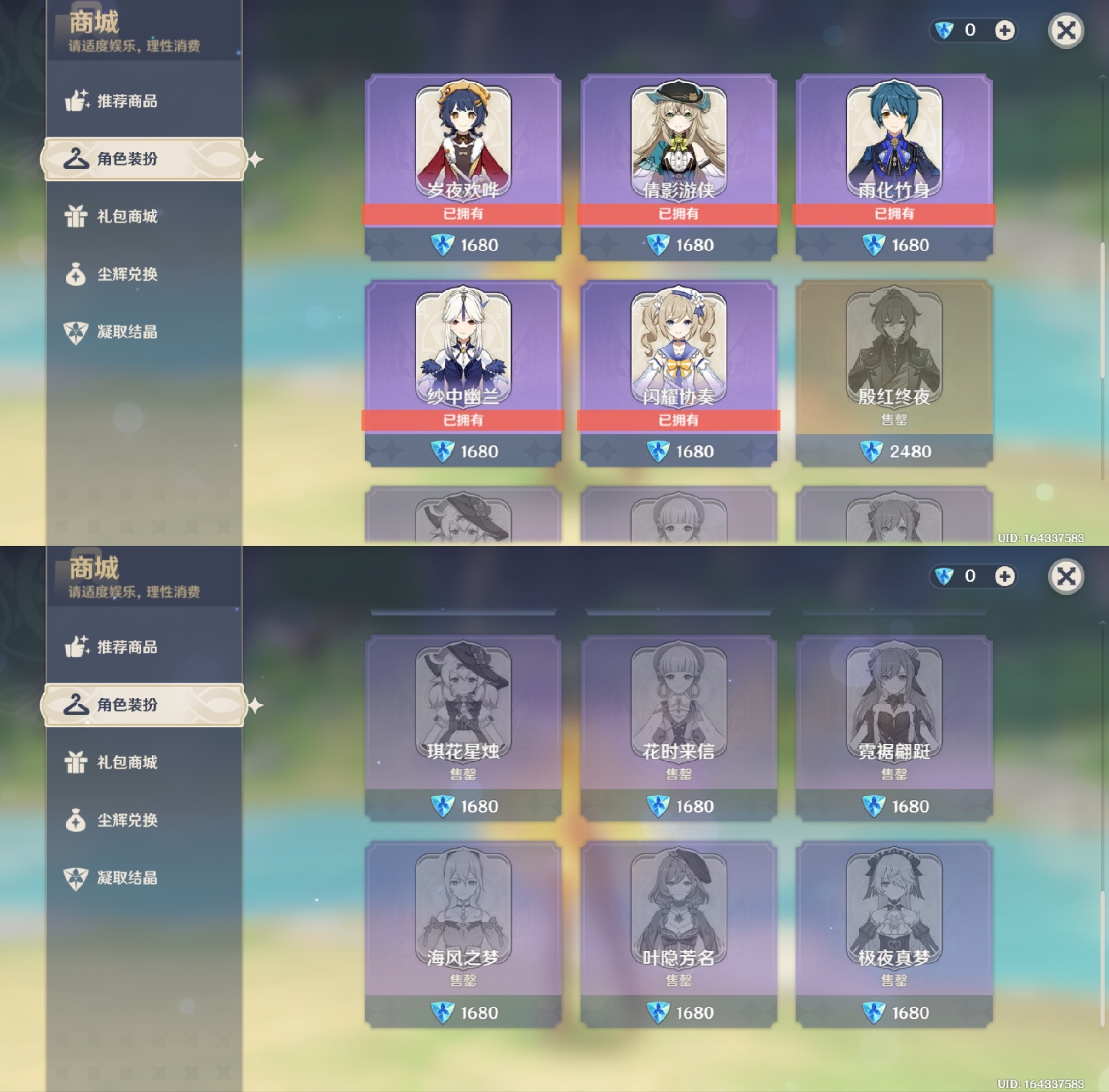 角色都是关键命座,能组多支强势队伍,深渊随便打无压力,成品号入手就能玩,角色池垫了64抽,具体看图