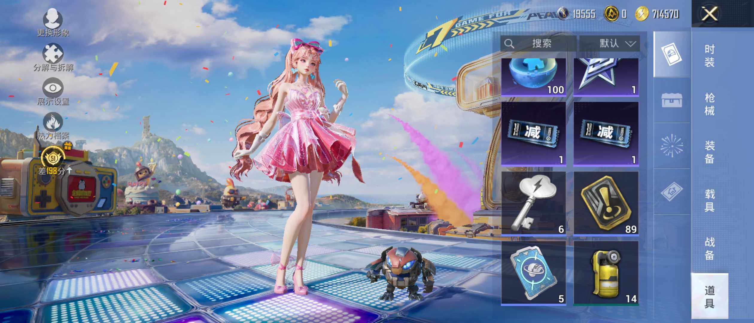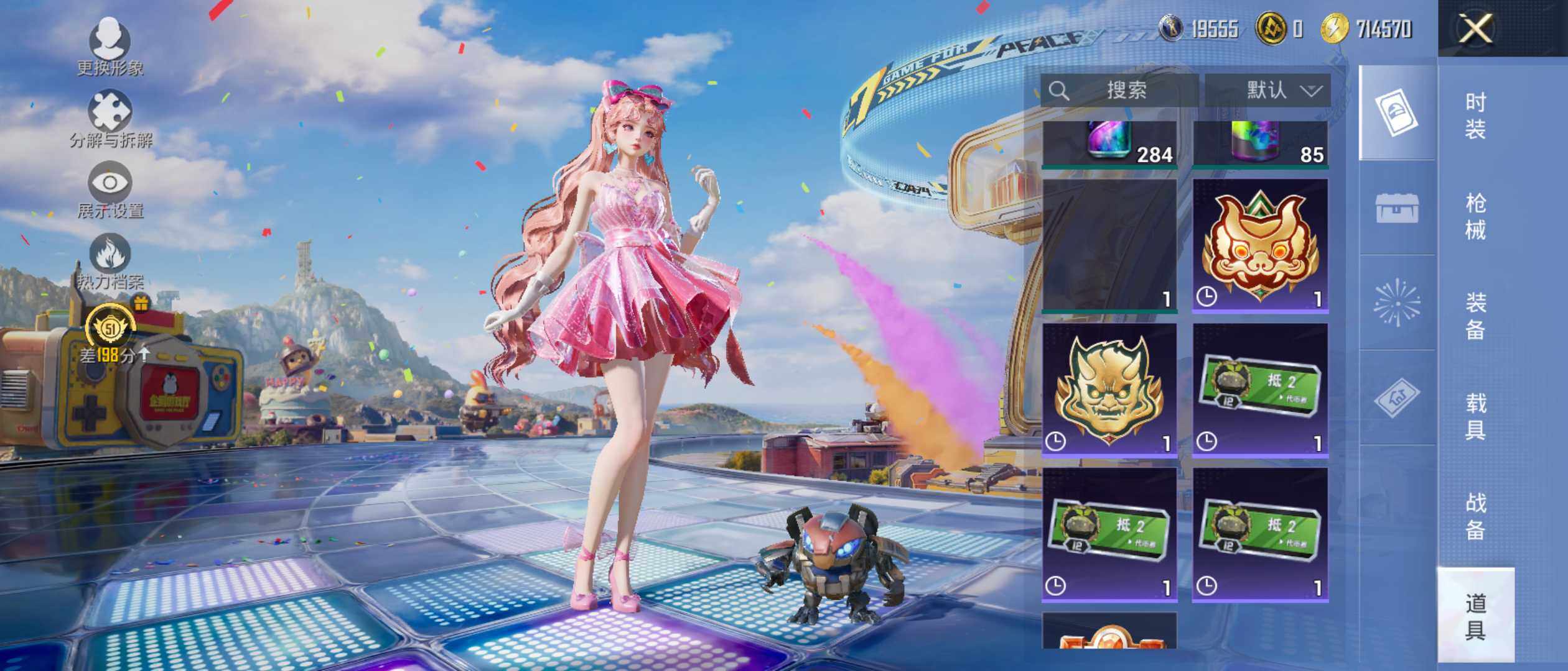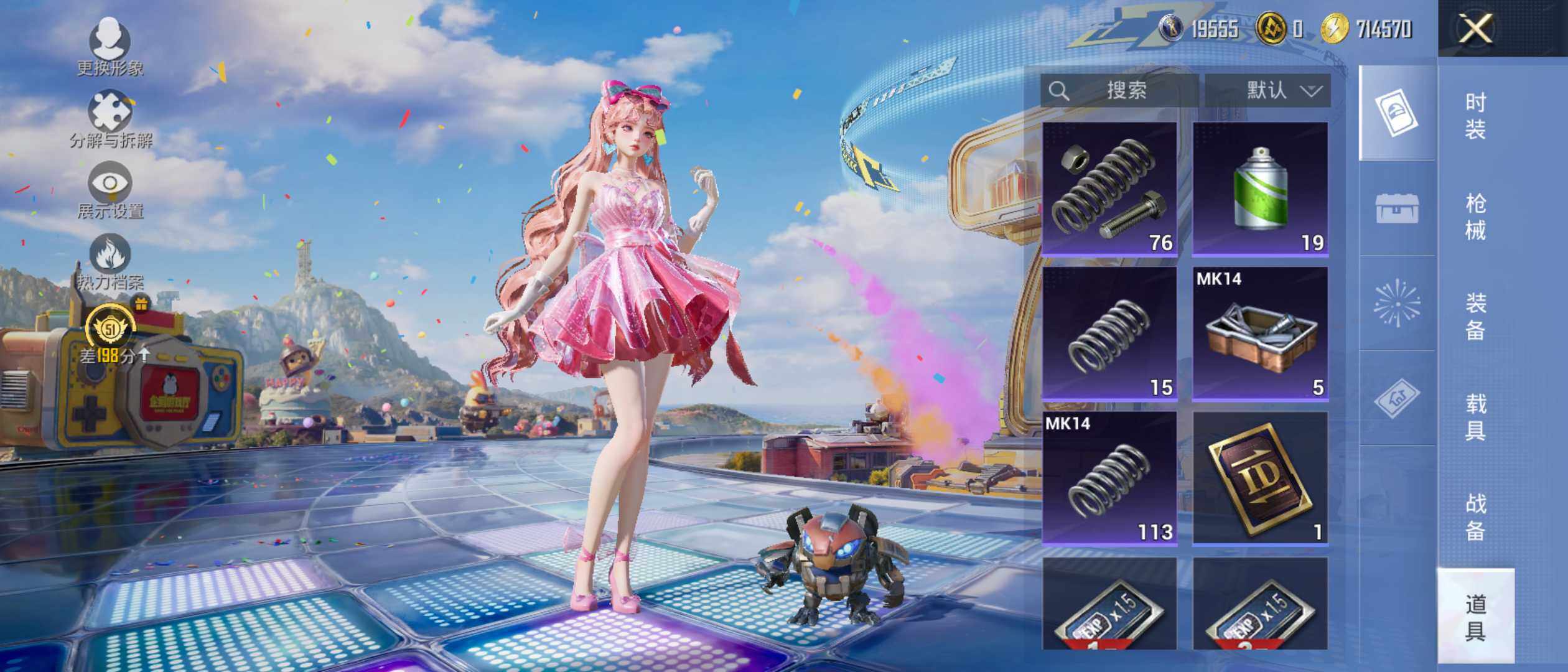 安卓 手Q-14粉装-6特效枪-0载具-0粉色飞行器-42870热力值-5王牌