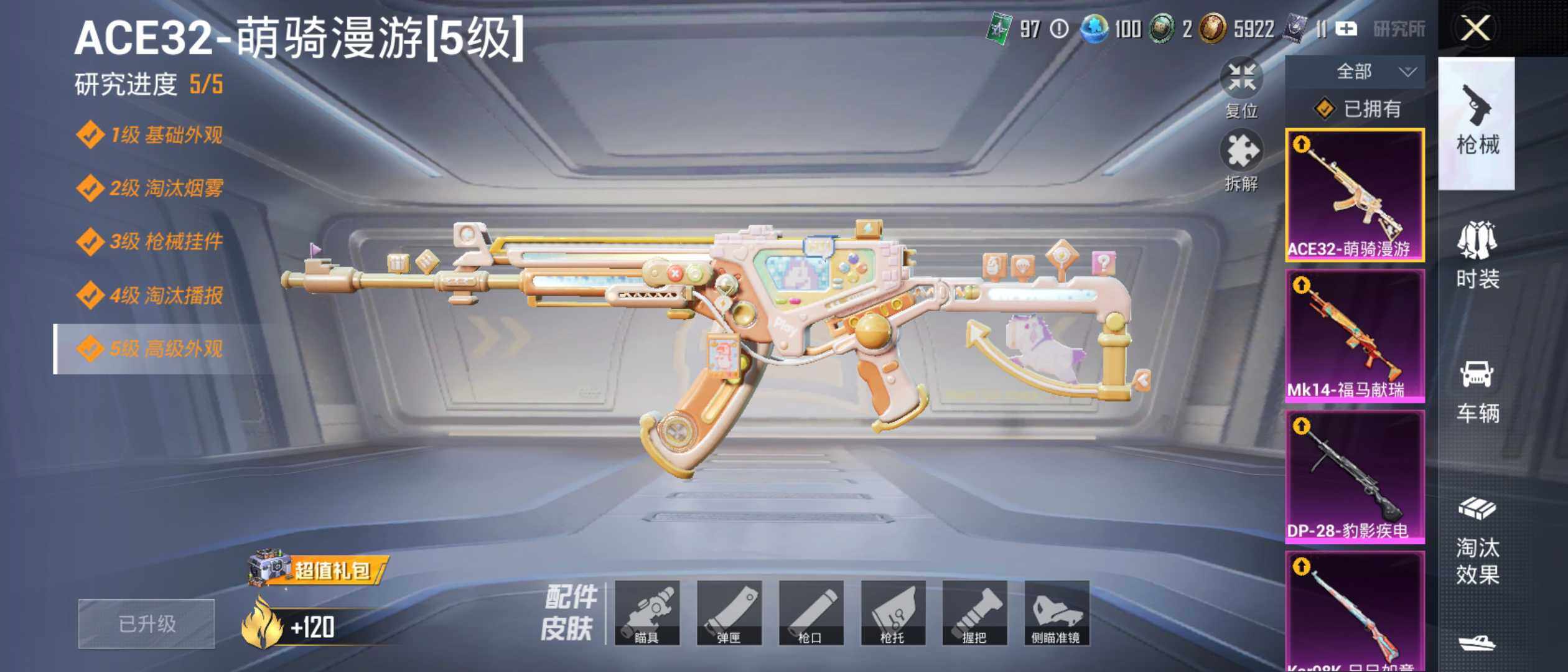 安卓 手Q-14粉装-6特效枪-0载具-0粉色飞行器-42870热力值-5王牌印记-111套装-116枪皮