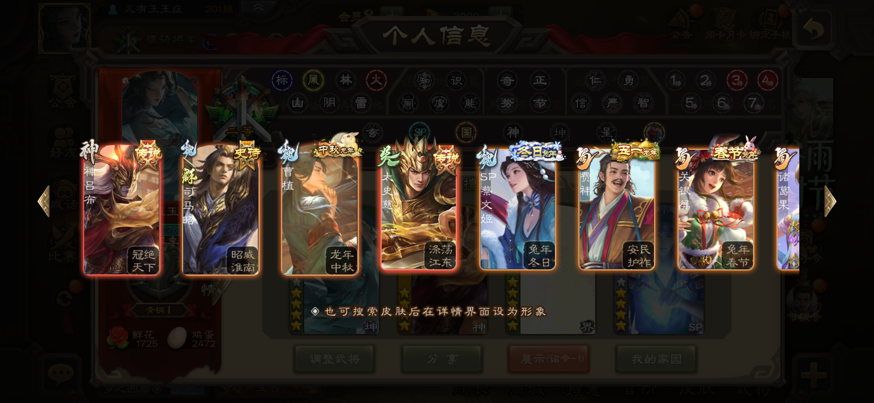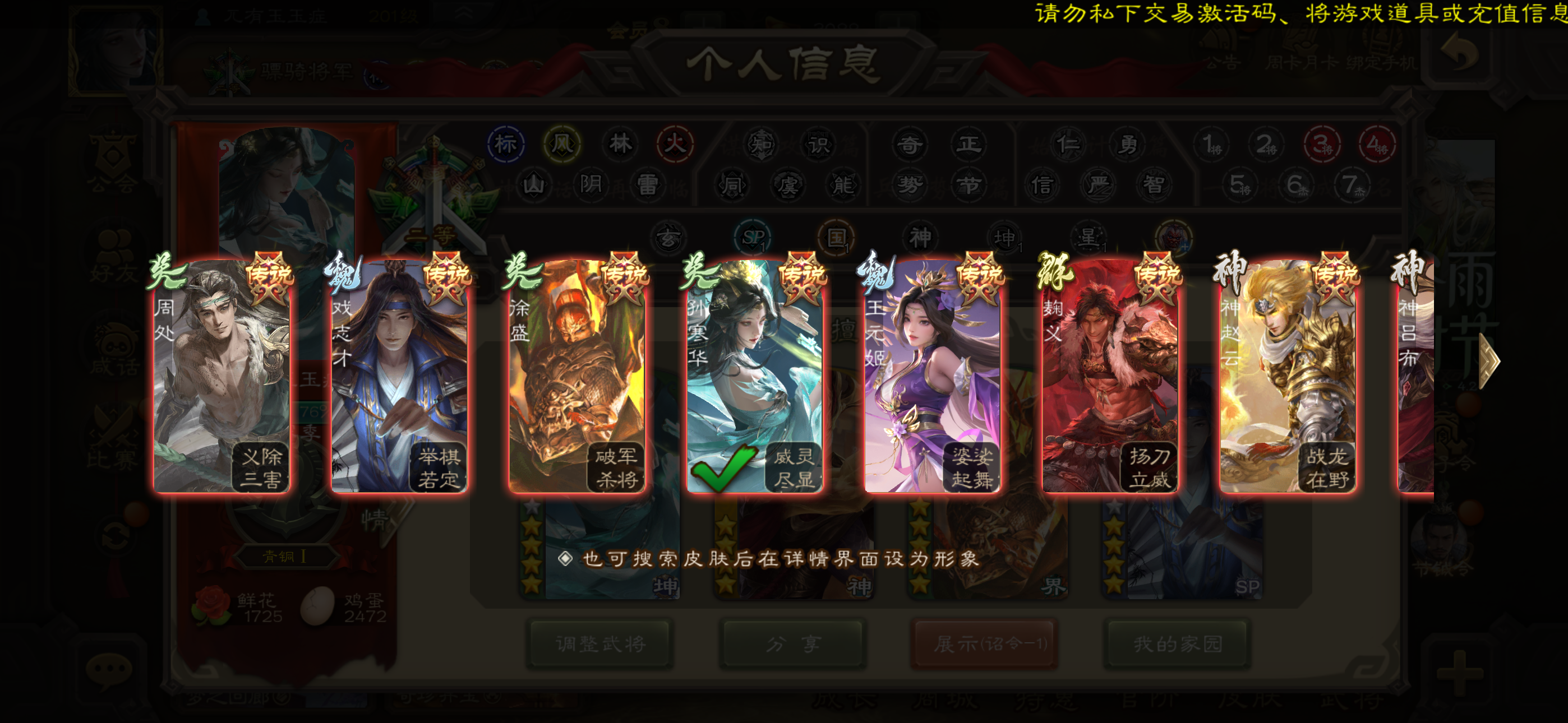 三国杀骠骑2账号 24史诗 孙寒华回廊动皮➕大宝动等