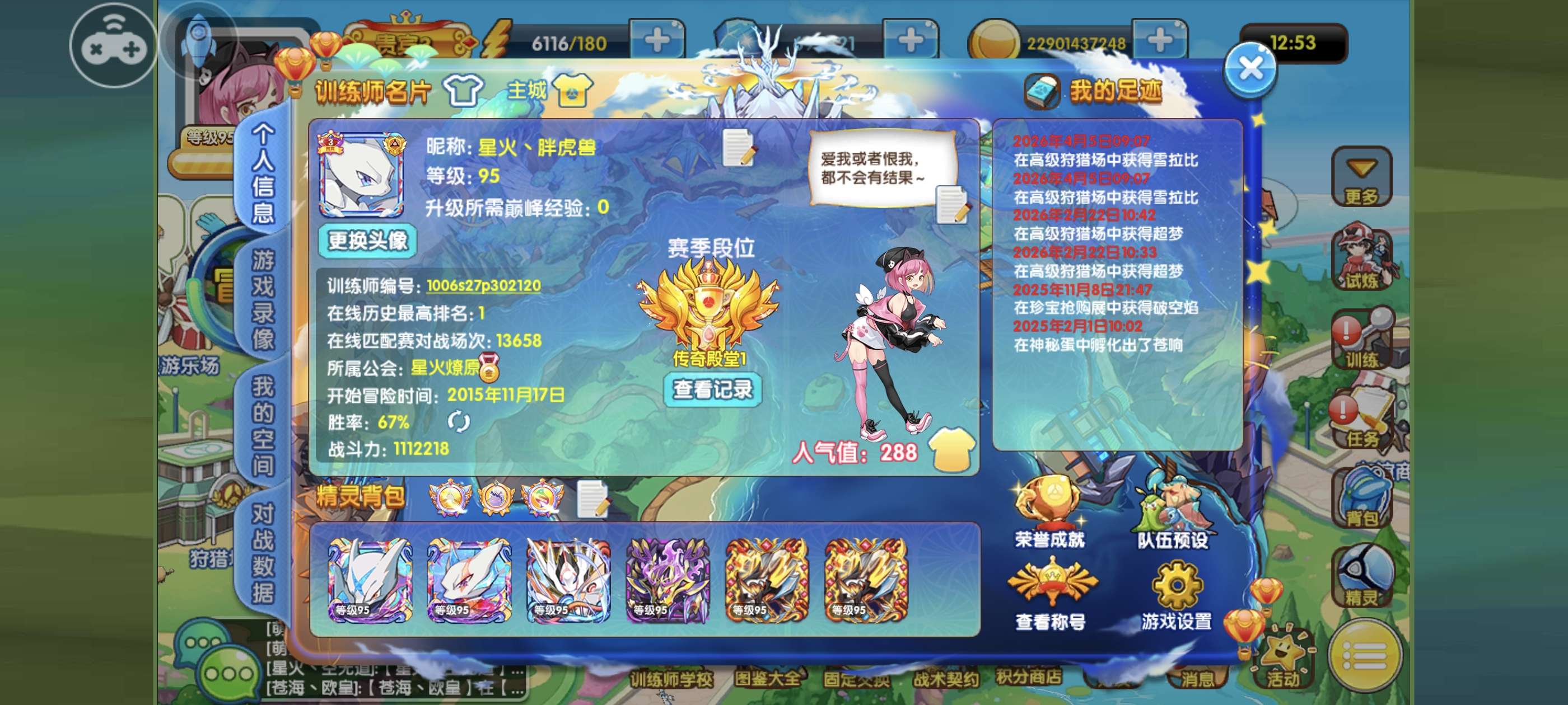 ios混服双端55折(安卓苹果都能玩)95贵宾,双超梦鬼龙35只全99全68,6个800徽章比赛号