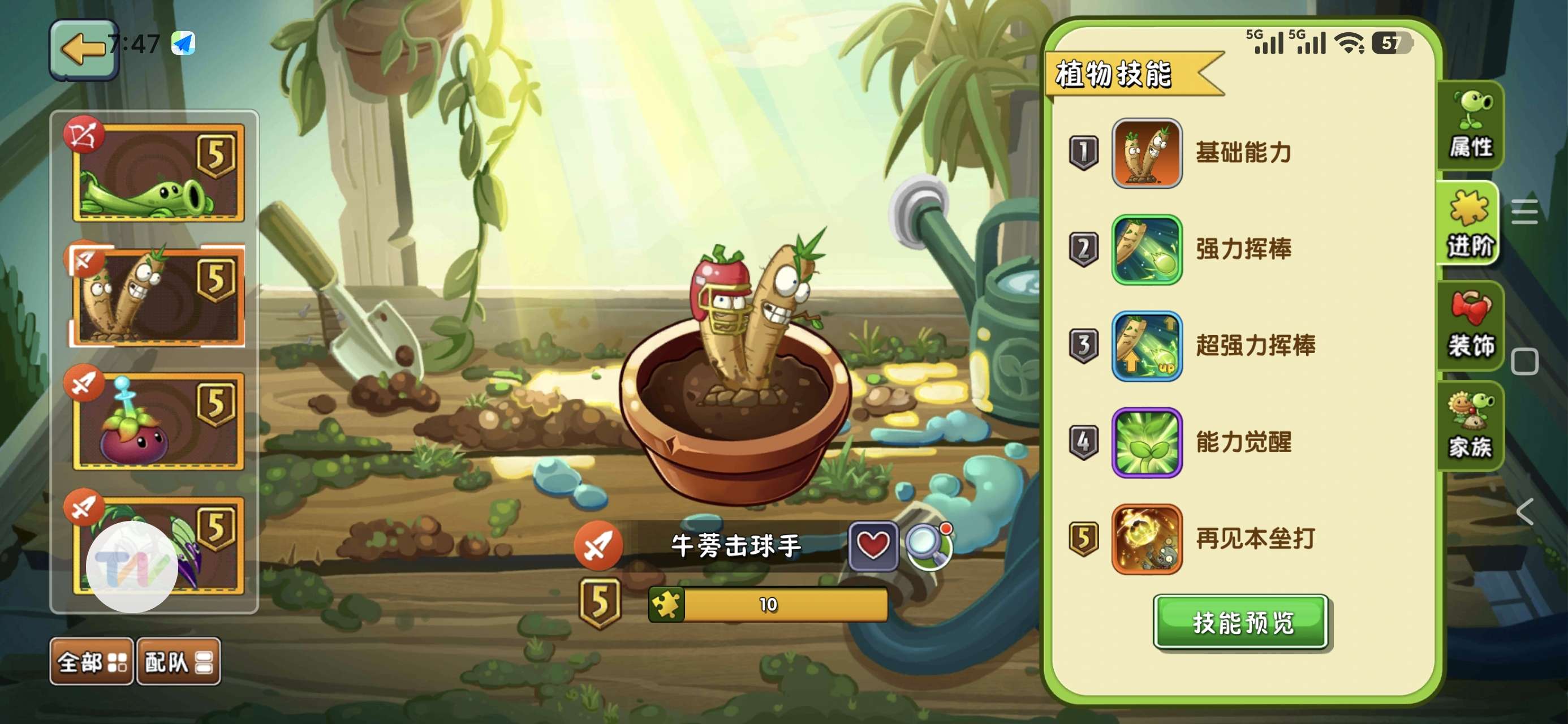 有贪吃龙草守卫菇,成品号植物碎片基本都够升到5阶的,进阶液无尽模式可获得,无尽常用植物基本都5级,神