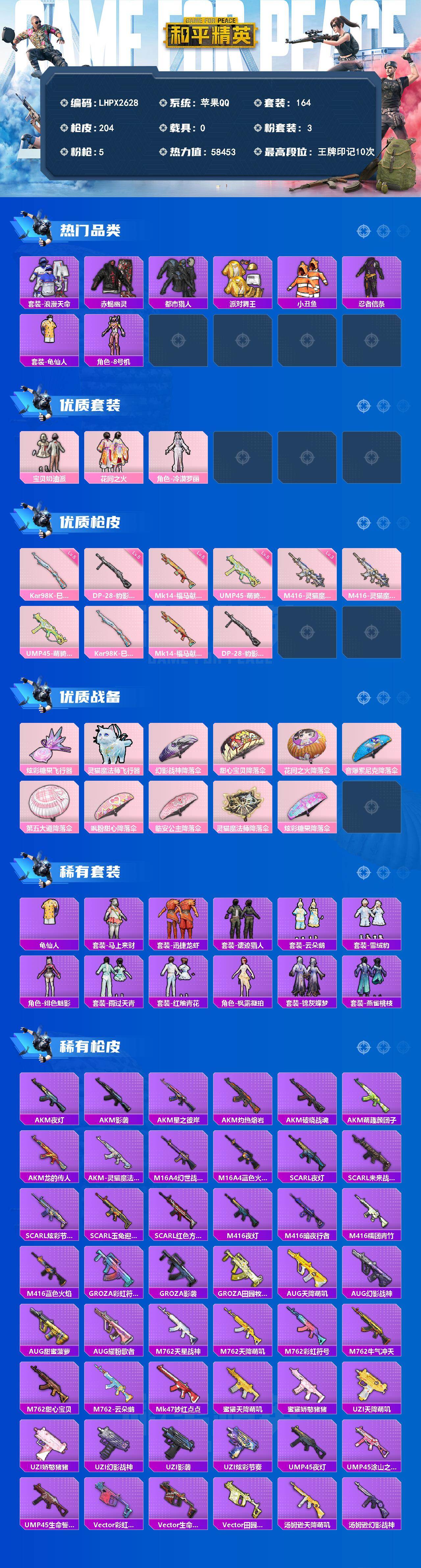 身法素材号/绝世印记1【特价出售/店主推荐--热门套装浪漫天命赤蝎都市金鞋/小丑鱼】苹果 手Q-3粉装-5特效枪-2粉色飞行器-58453热力值-10王牌印记-164套装-204枪皮【热门品类】:套装-浪漫天命,套装-赤蝎幽灵,套装-都市猎人,套装-派对舞王,套装-小丑鱼,套装-忍者信条,套装-龟仙人,角色-8号机【粉色套装】:粉装-宝贝奶油派,粉装-花间之火,角色-冷漠罗丽【粉色枪皮等级】:M